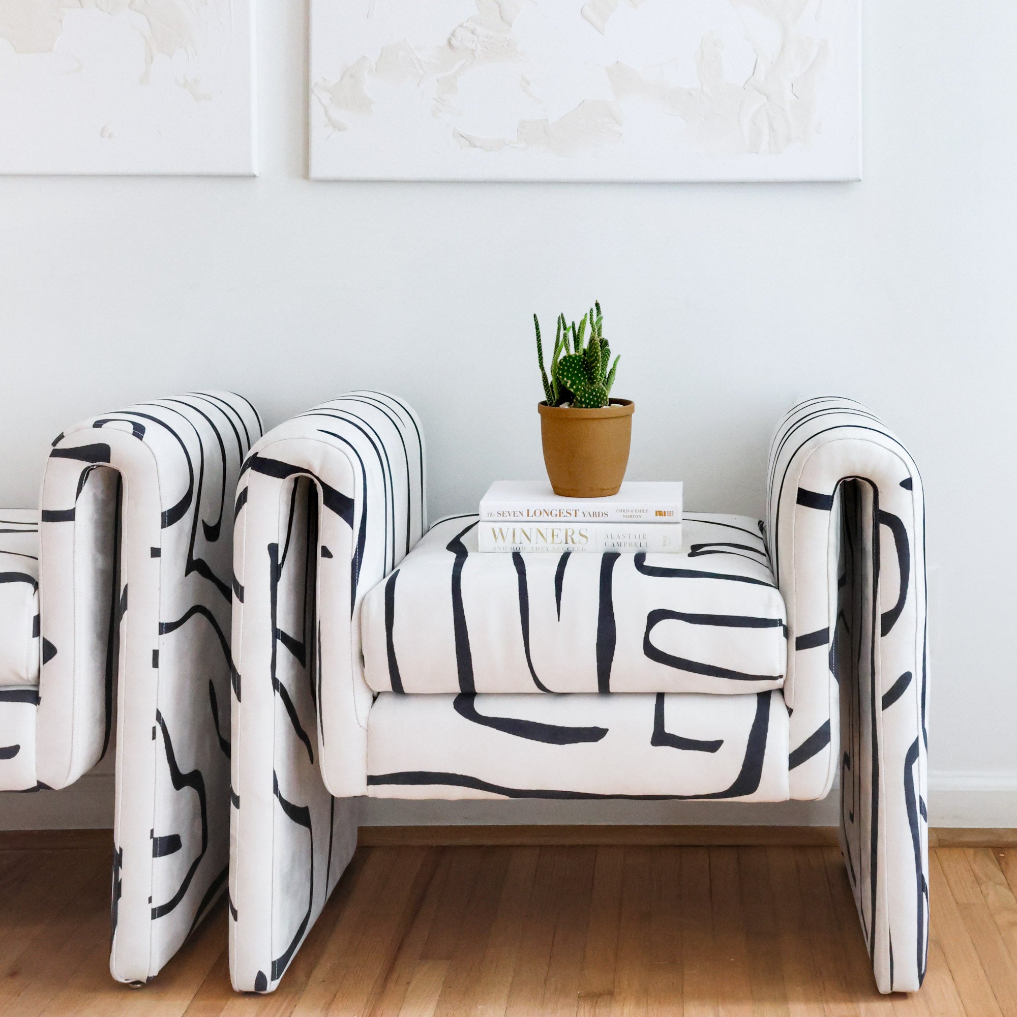 In Stock Promenade Ottoman in Mary Jane Fabric