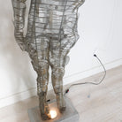 Mounted on a metal base with an integrated uplight, the sculpture comes alive when illuminated, casting intricate shadows that emphasize its form and craftsmanship. A true conversation piece, this sculpture is ideal for modern interiors, galleries, or anywhere you want art to stop people in their tracks.