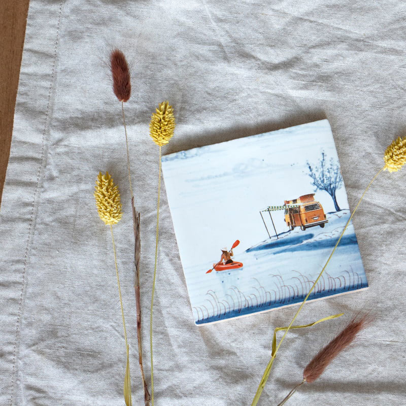 Ceramic tiles have been made in and around Delft, The Netherlands, since the 16th century. StoryTiles continues the tradition by creating miniature art-on-tiles. All tiles are baked in traditional Dutch ovens at a high temperature, what makes them heat and water resistant. Each design is unique, as it is hand baked and designed.