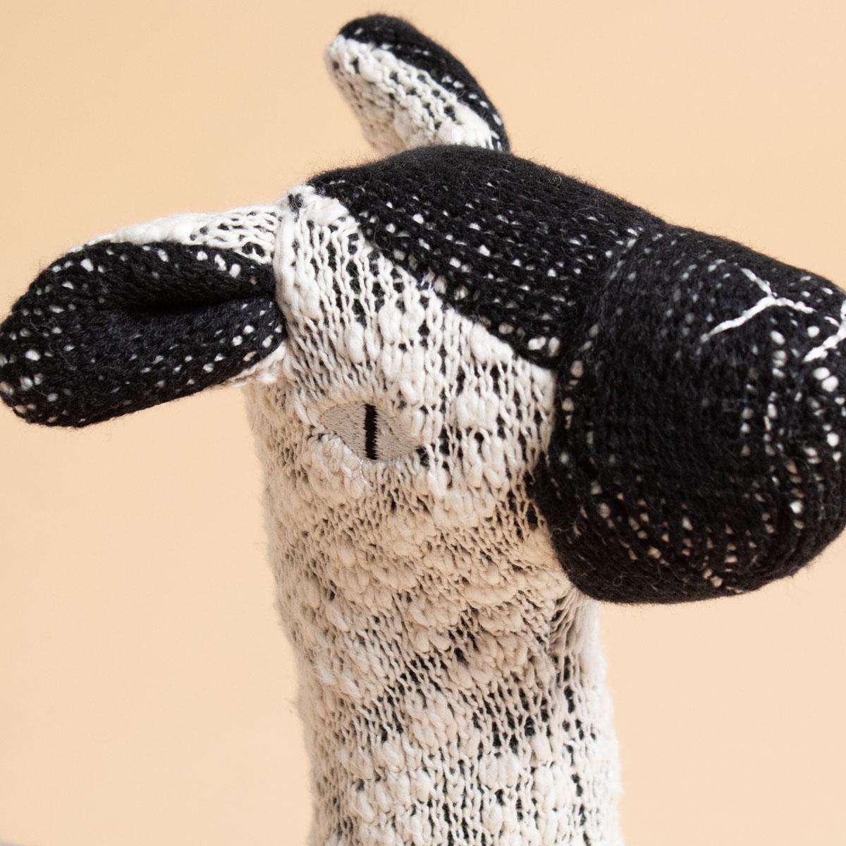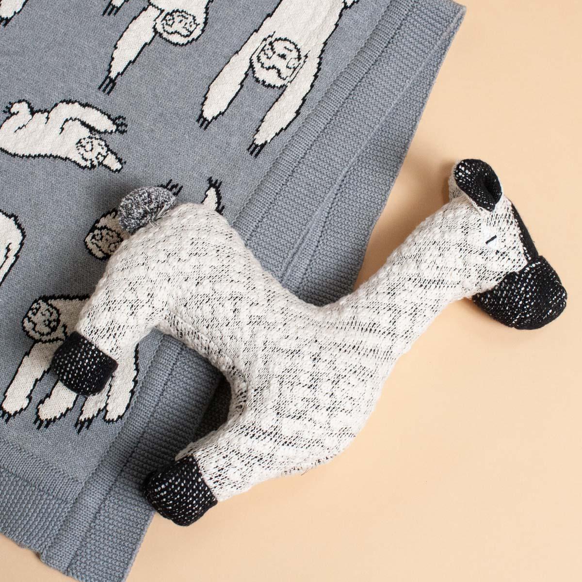 Our Llama Friend stuffed animal is hand-knit from cotton and oh so soft.