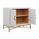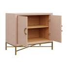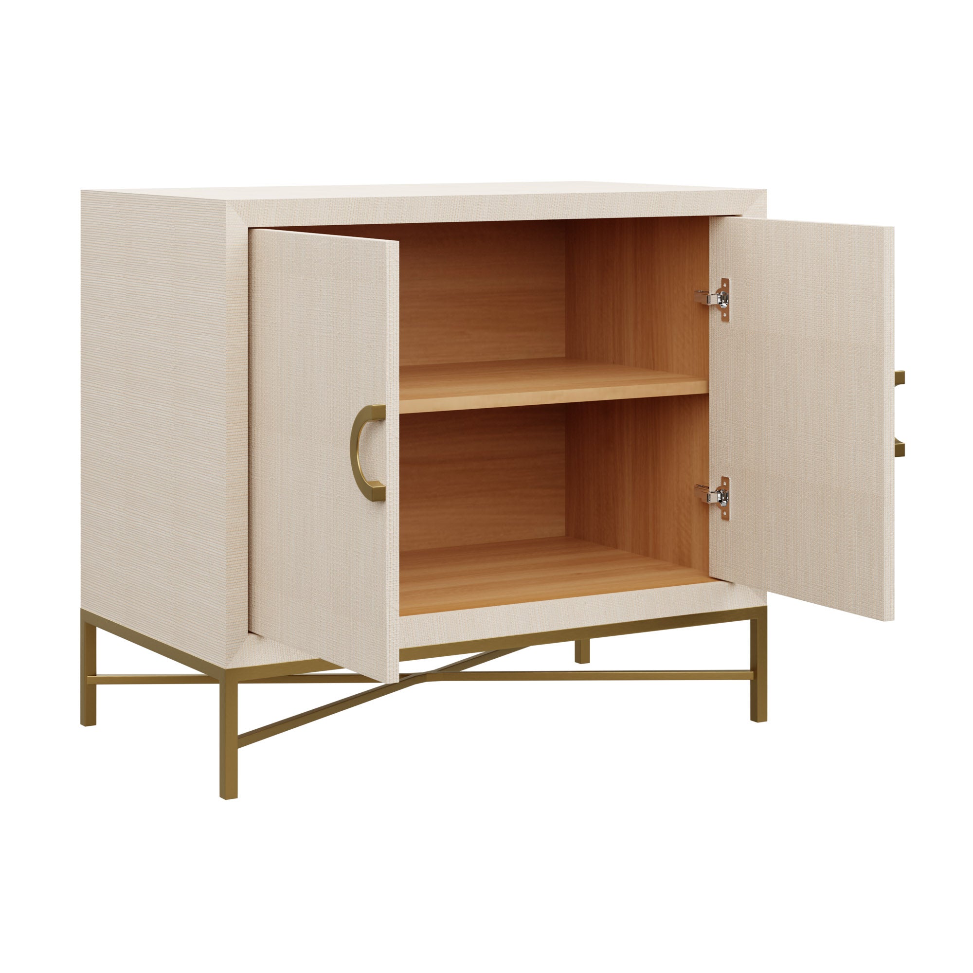 Our Scout Bespoke Monarch Chest features a stylish X base and simple doors that allow the brass half moon hardware to shine. A roomy cabinet with an adjustable shelf is the perfect place to store away your odds and ends.
