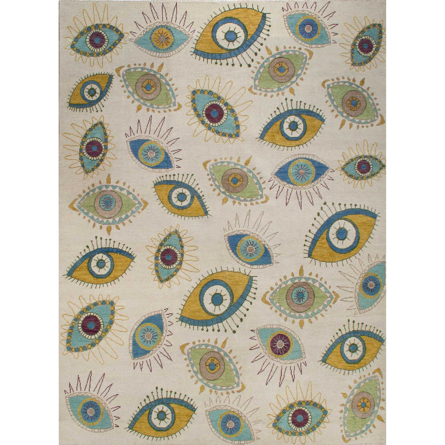 All eyes on you. Our Ojo rug is a fun sight to see in any space! Colorful earthy evil eyes pop on a neutral background.