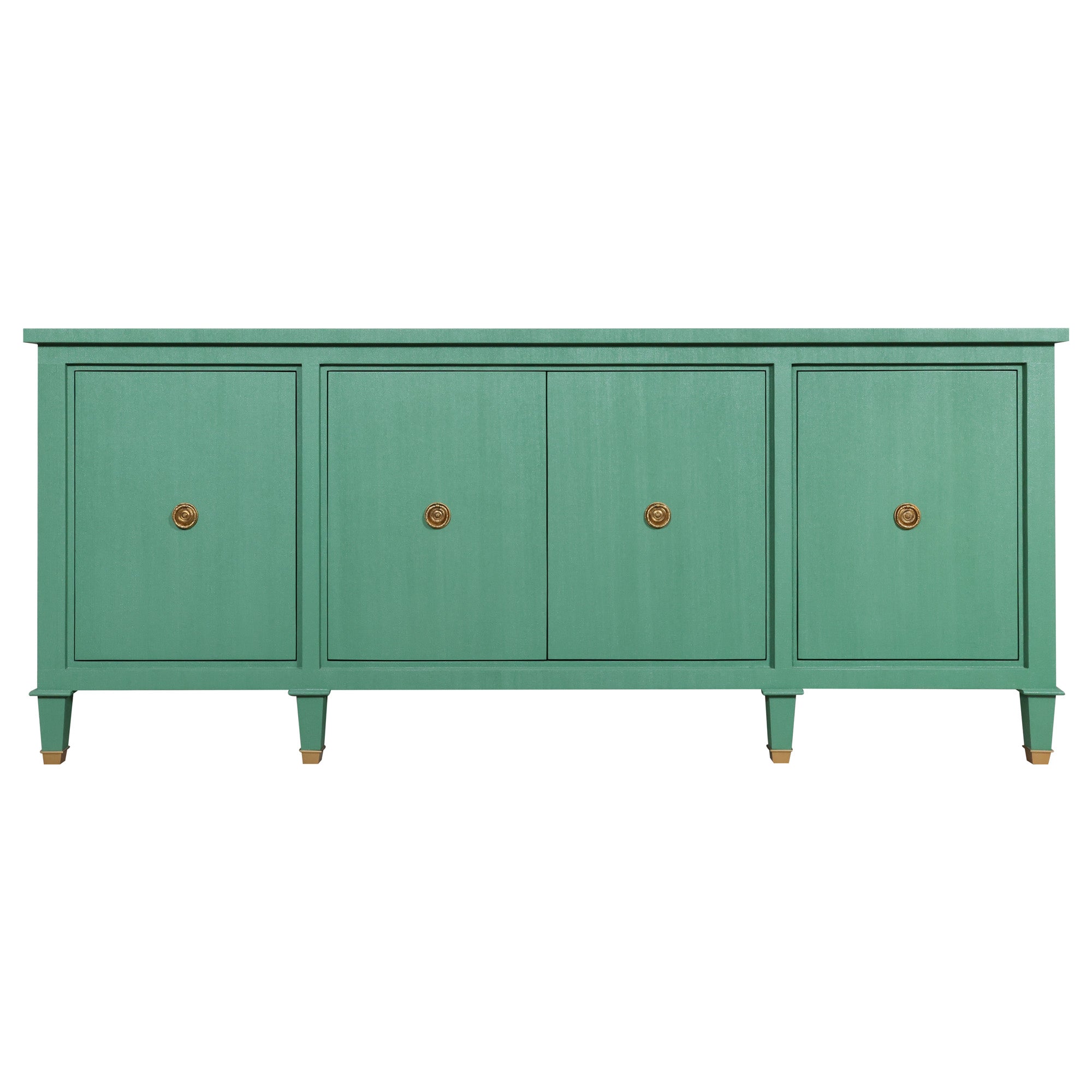 Four doors conceal generous storage, while tapered legs with brass-capped feet add a touch of quiet luxury. From dining room anchor to entryway showpiece, this credenza proves that storage can absolutely steal the spotlight.
