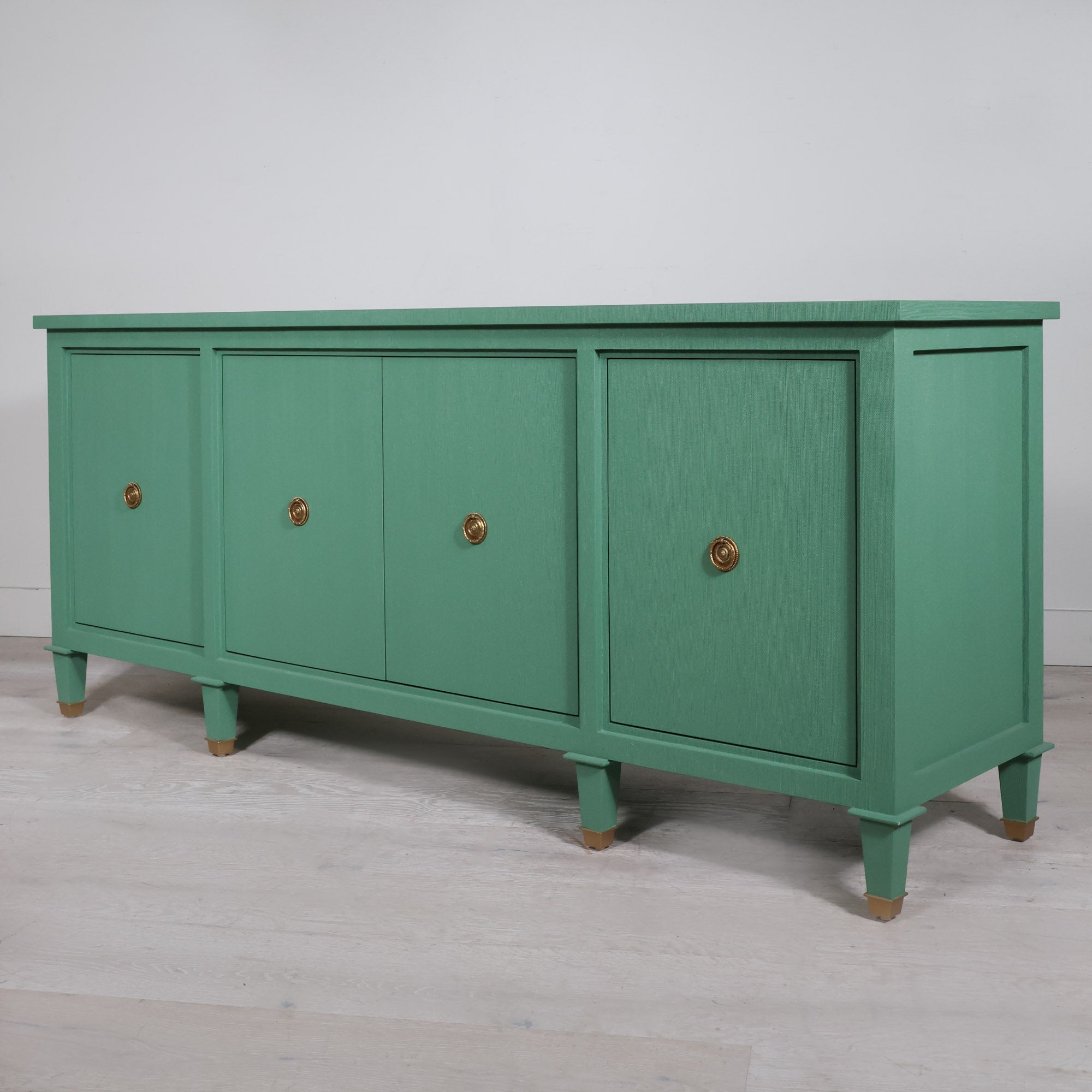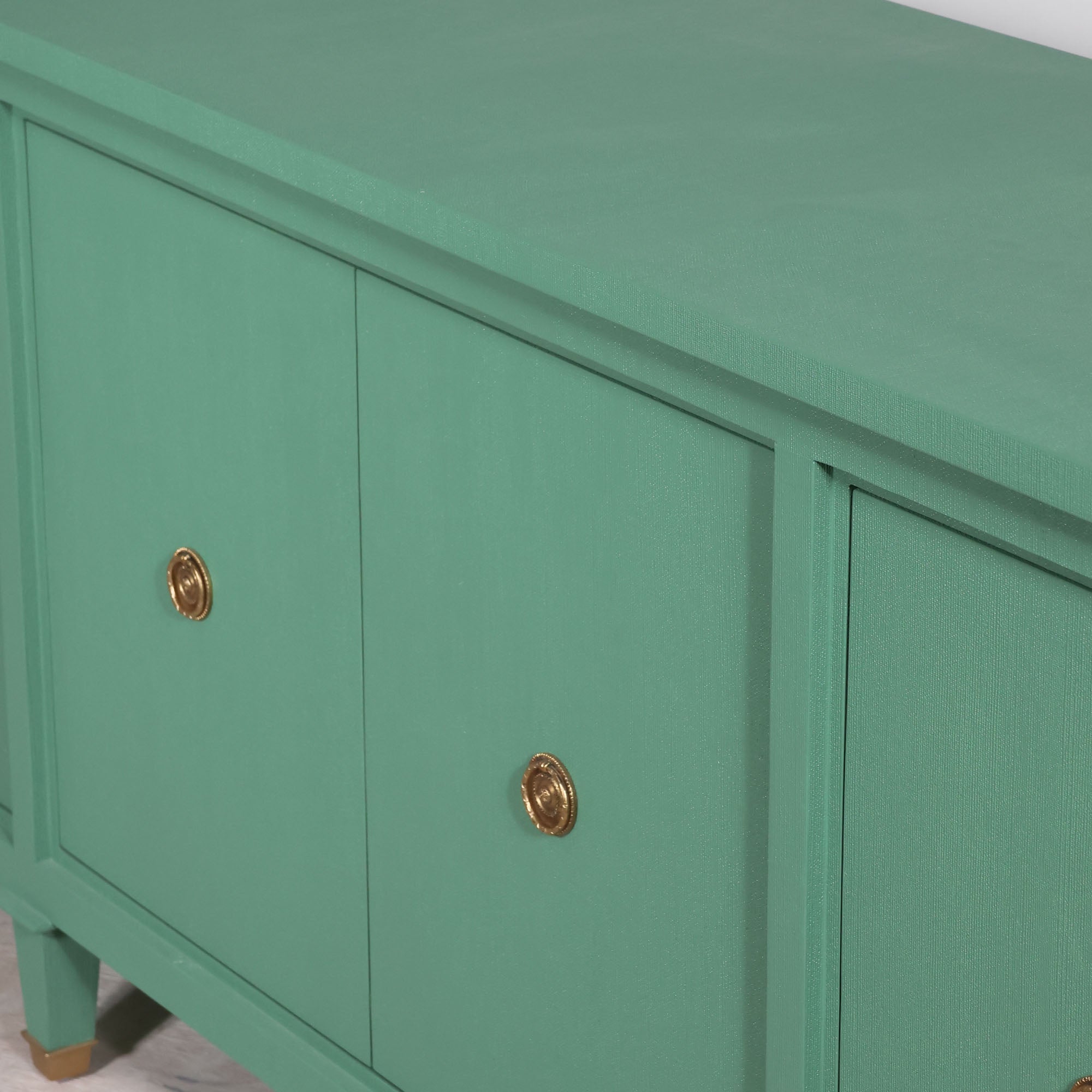 Tailored, timeless, and just the right amount of unexpected. The Watson Credenza in Green Linen blends classic craftsmanship with a modern point of view. Dressed in a fresh, textured green finish and accented with antique brass ring pulls, Watson is as functional as he is dashing.