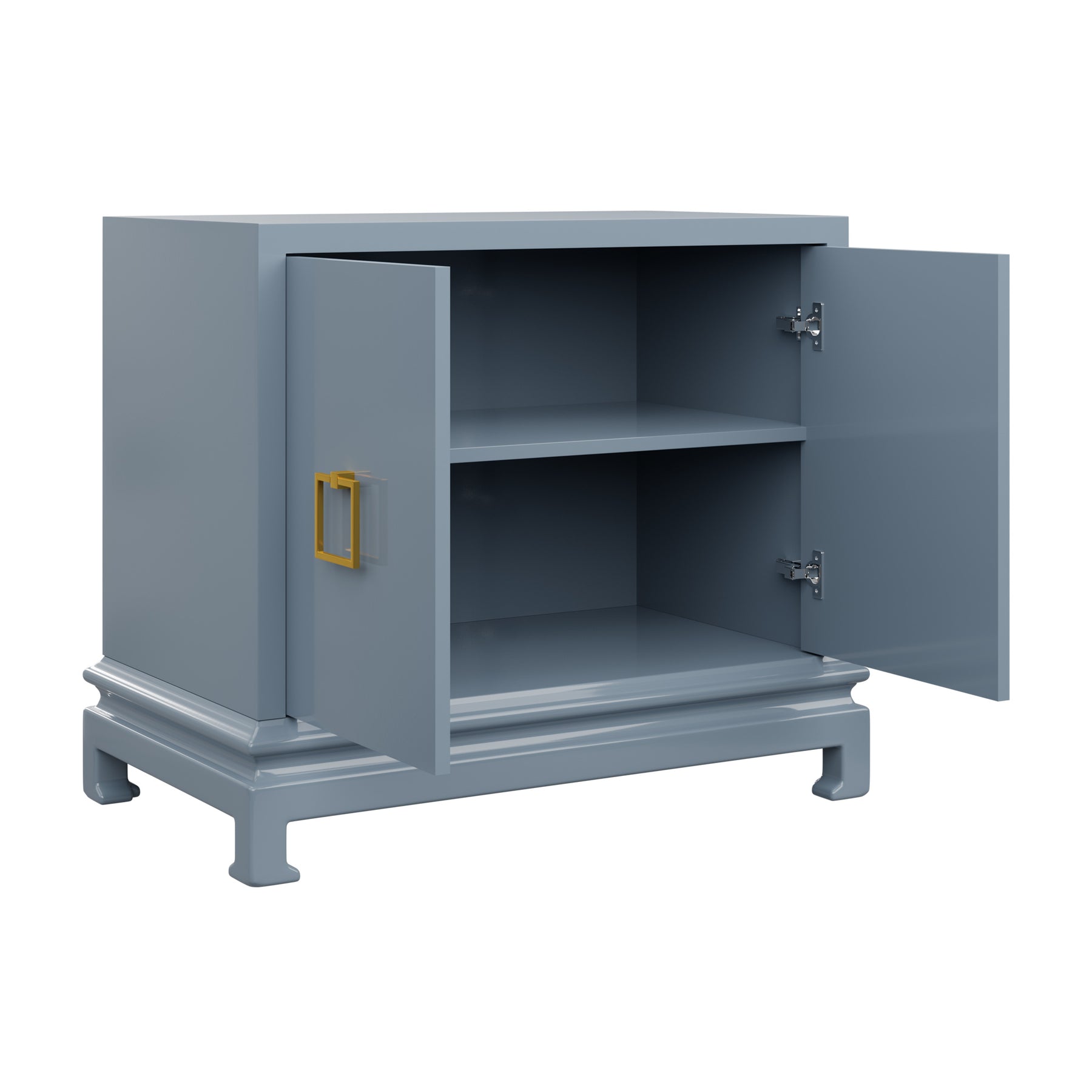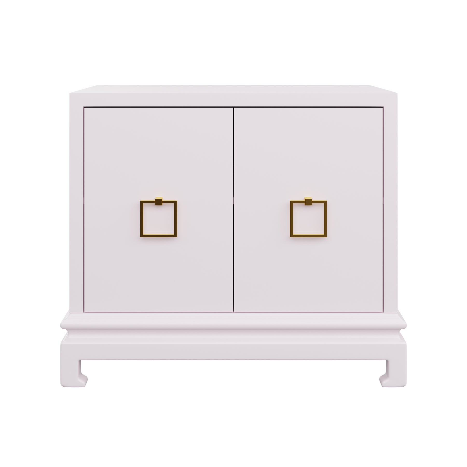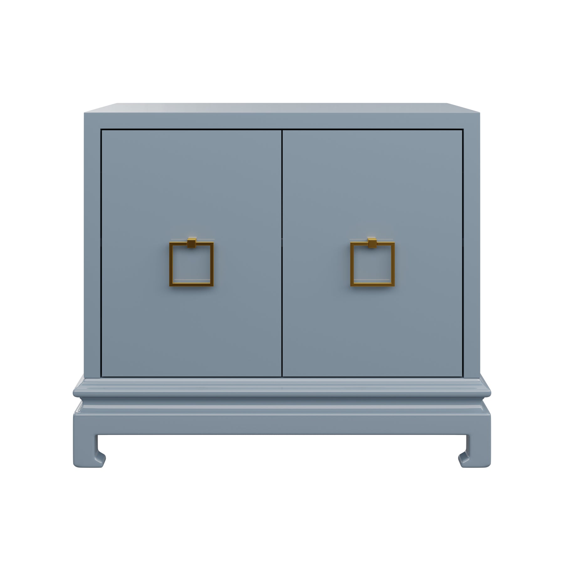 Our bespoke Yates Chest features modernized Ming legs for a lewk both current and classic. Square brass ring hardware pops on the center doors that hold one adjustable shelf inside.