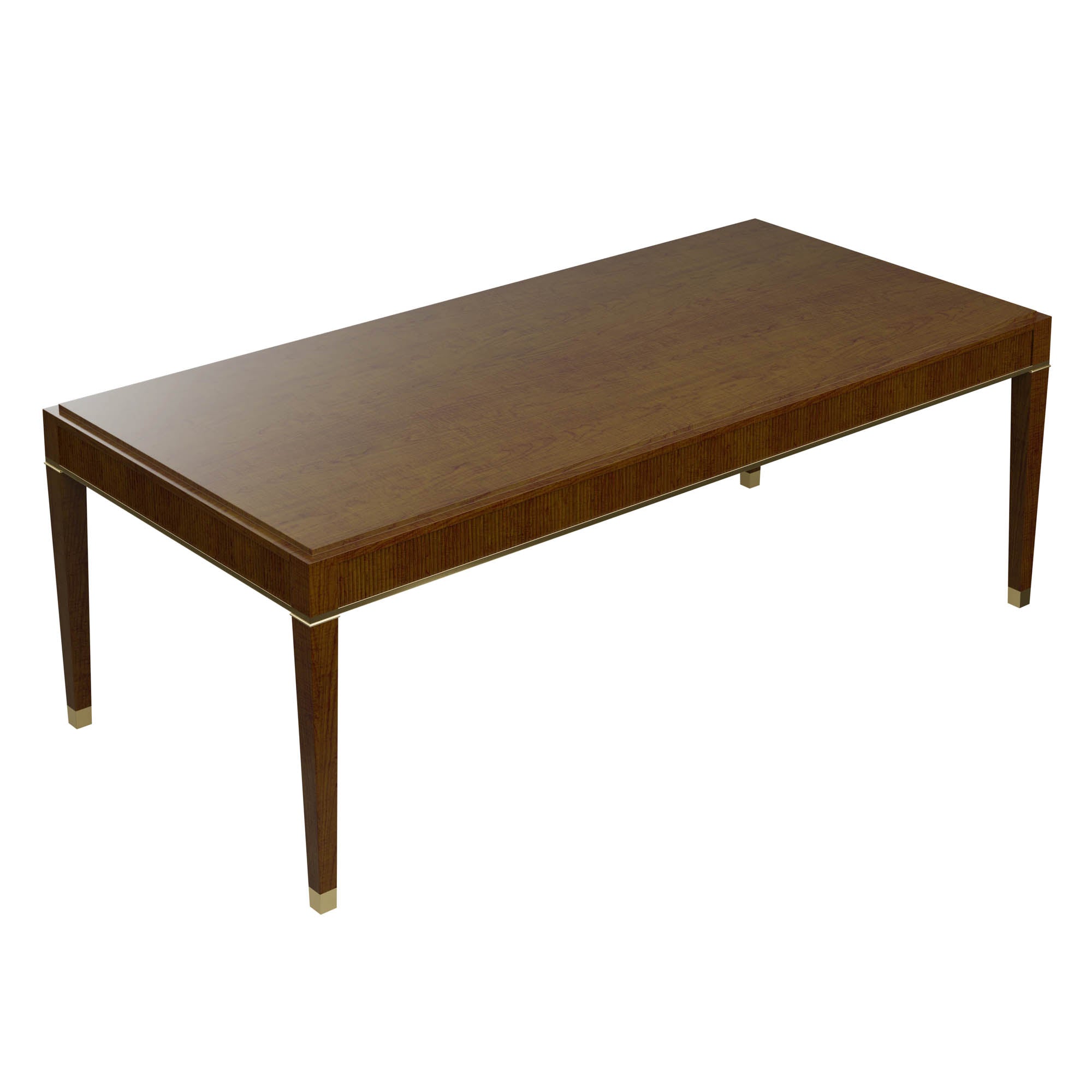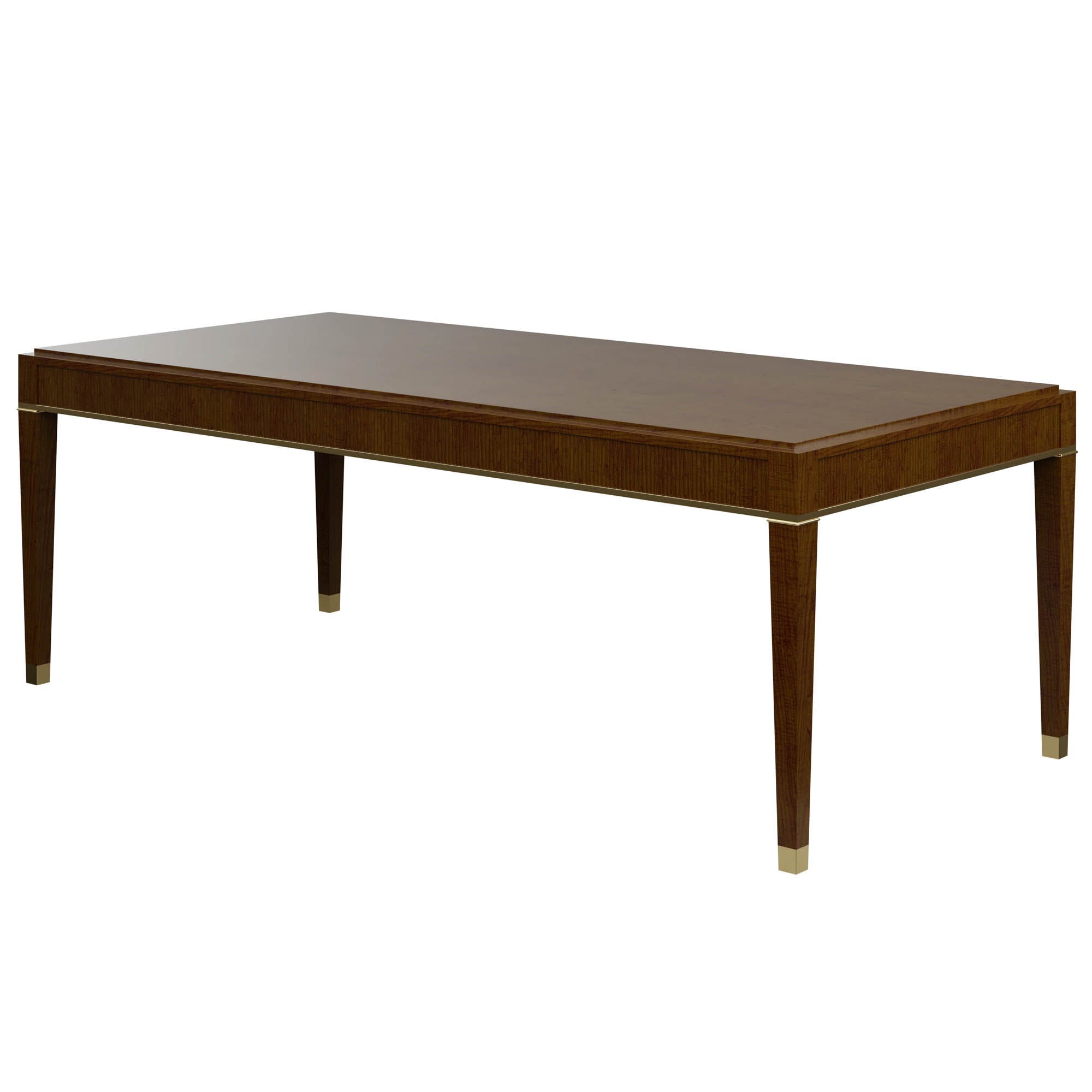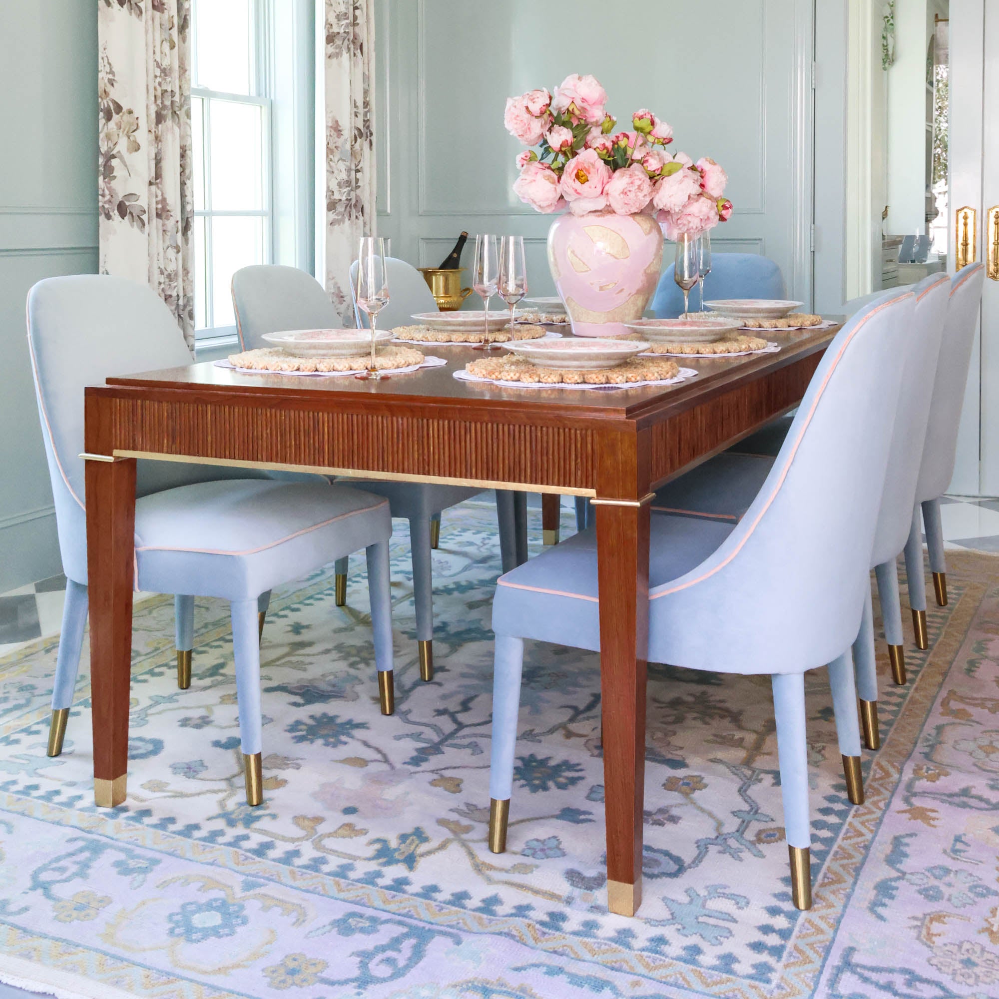 Striking and sexy, the Lollie Dining Table draws the eye with details that are sure to elevate any dining room. An eclectic extrusion of the tabletop adds exquisite interest amongst the subtle tapered legs and luxe brass painted details. Each side of the table features precise carved fluting for even more intrigue.