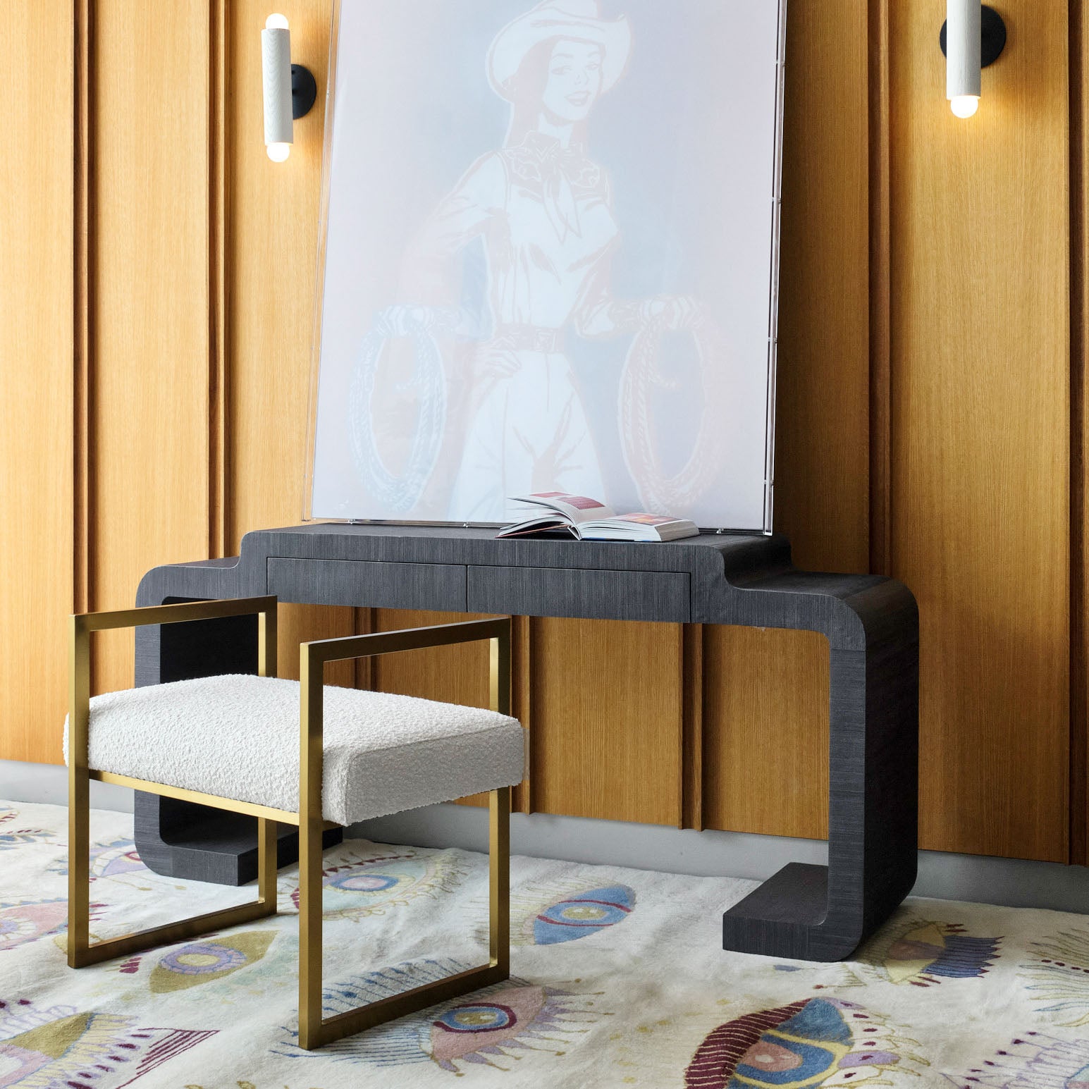 This custom rug was designed by Scout and hand-tufted by artisans in India. It features a durable wool pile that's super soft underfoot.