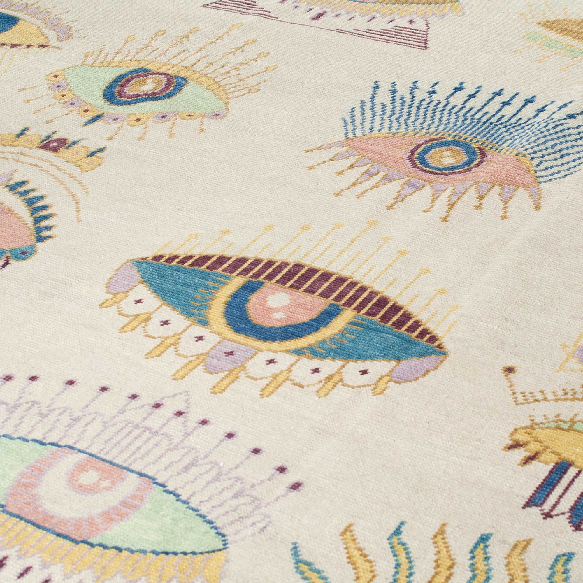 Designed by Scout, our Bright Eye Rug is hand woven with a Turkish-style knot by artisans in India. Its durable wool construction will stand the test of time in a well-trafficked space.