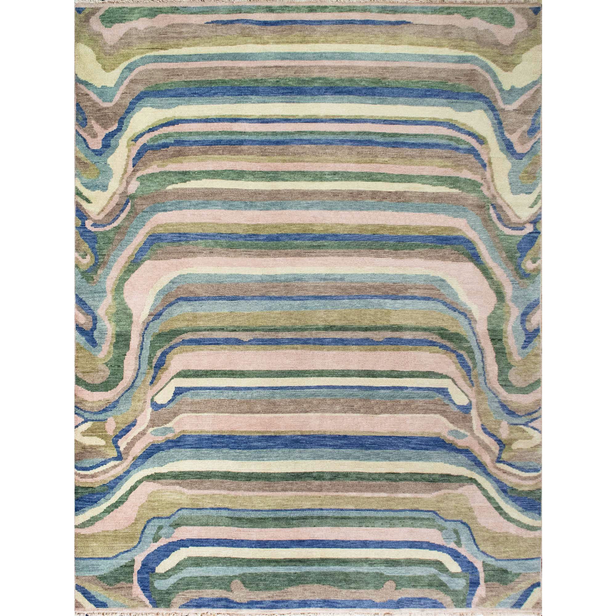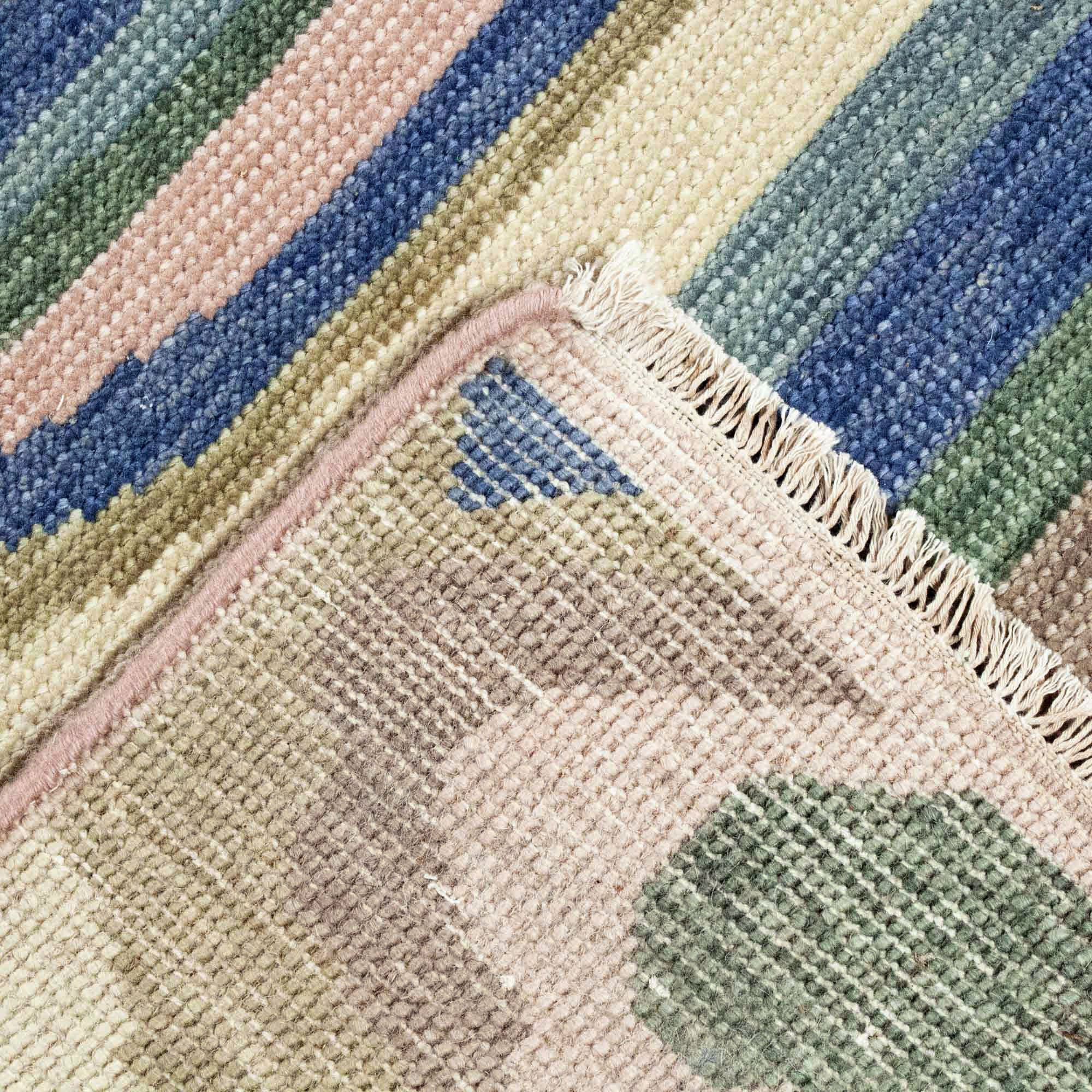 This custom oushak-inspired wool rug was designed by Scout and hand knotted by artisans in India. The colorful abstract pattern makes this rug fun and versatile for any space.