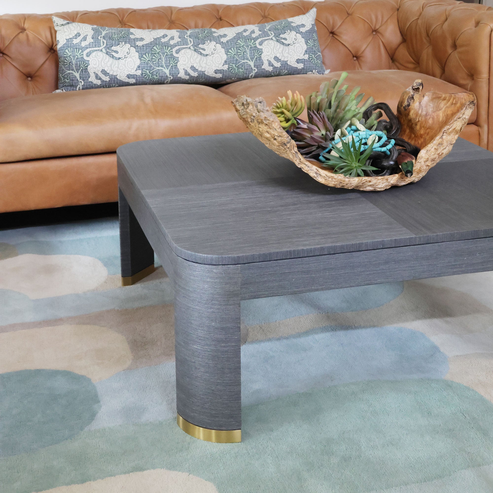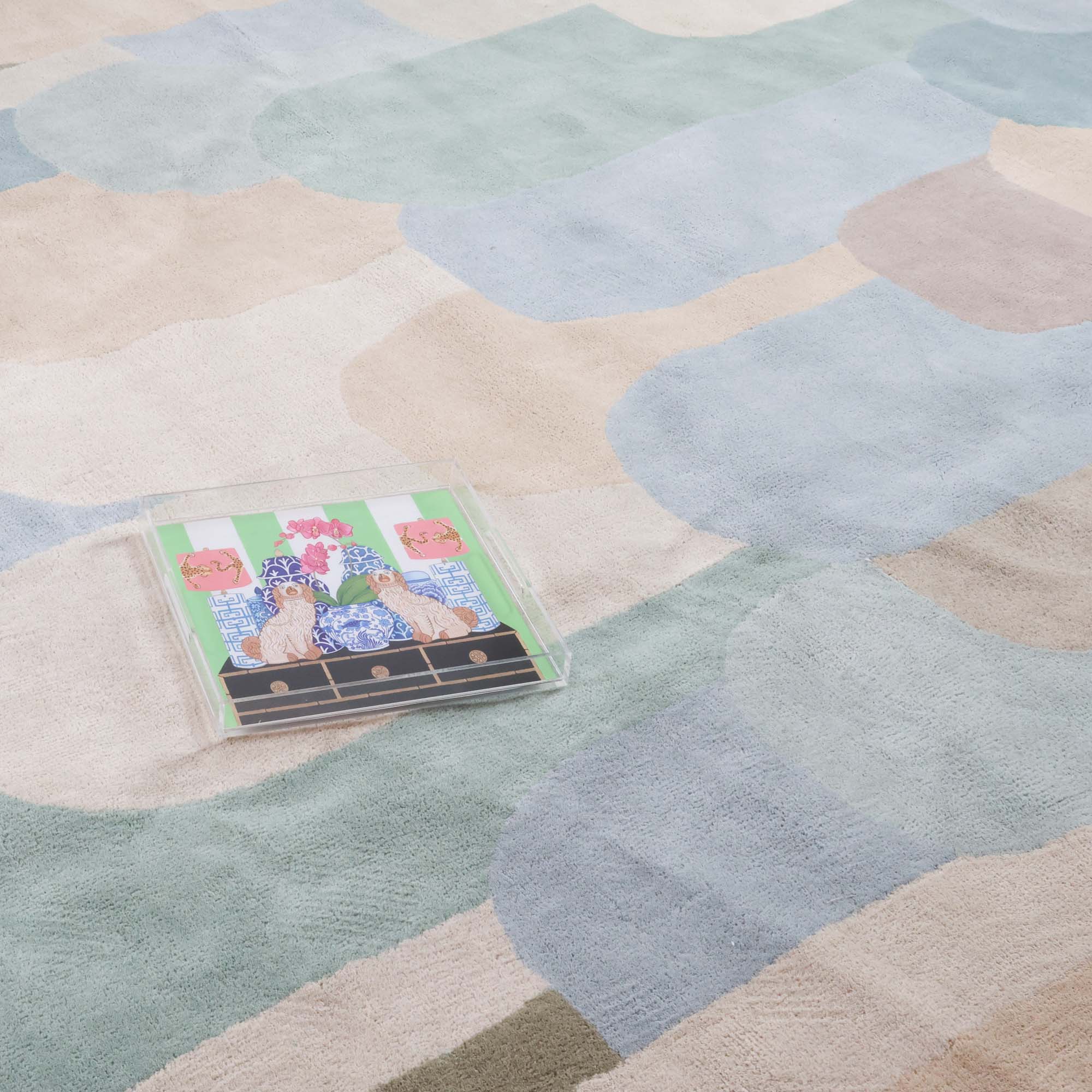 This custom rug was designed by Scout and hand-tufted by artisans in India. It features a durable wool pile that's super soft underfoot and soothing blue hues.