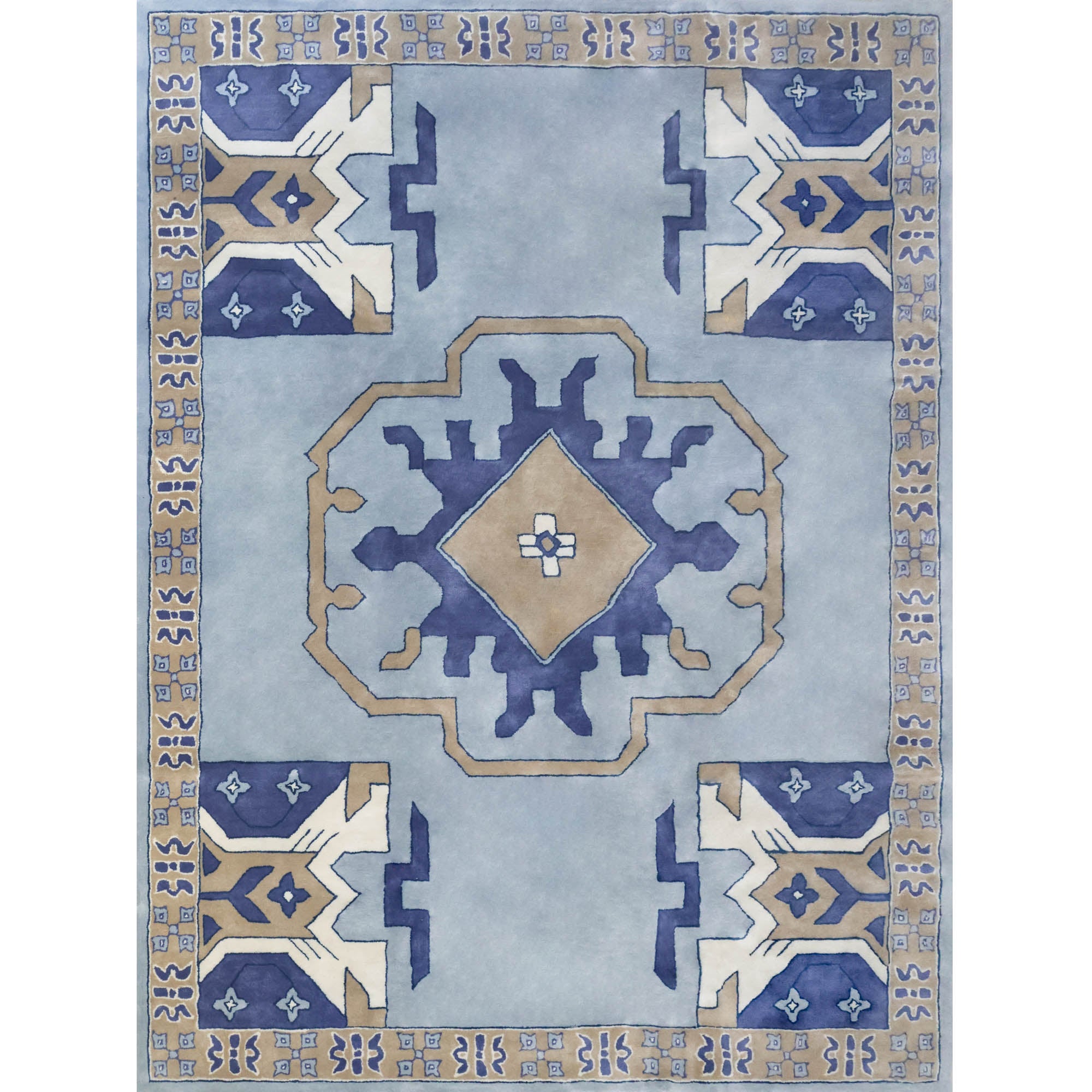 Depicting an Egyptian-inspired geometric pattern on a baby blue background, this rug will never leave you feeling blue. Designed by Scout and hand-tufted by artisans in India, it features a durable wool pile that's super soft underfoot.