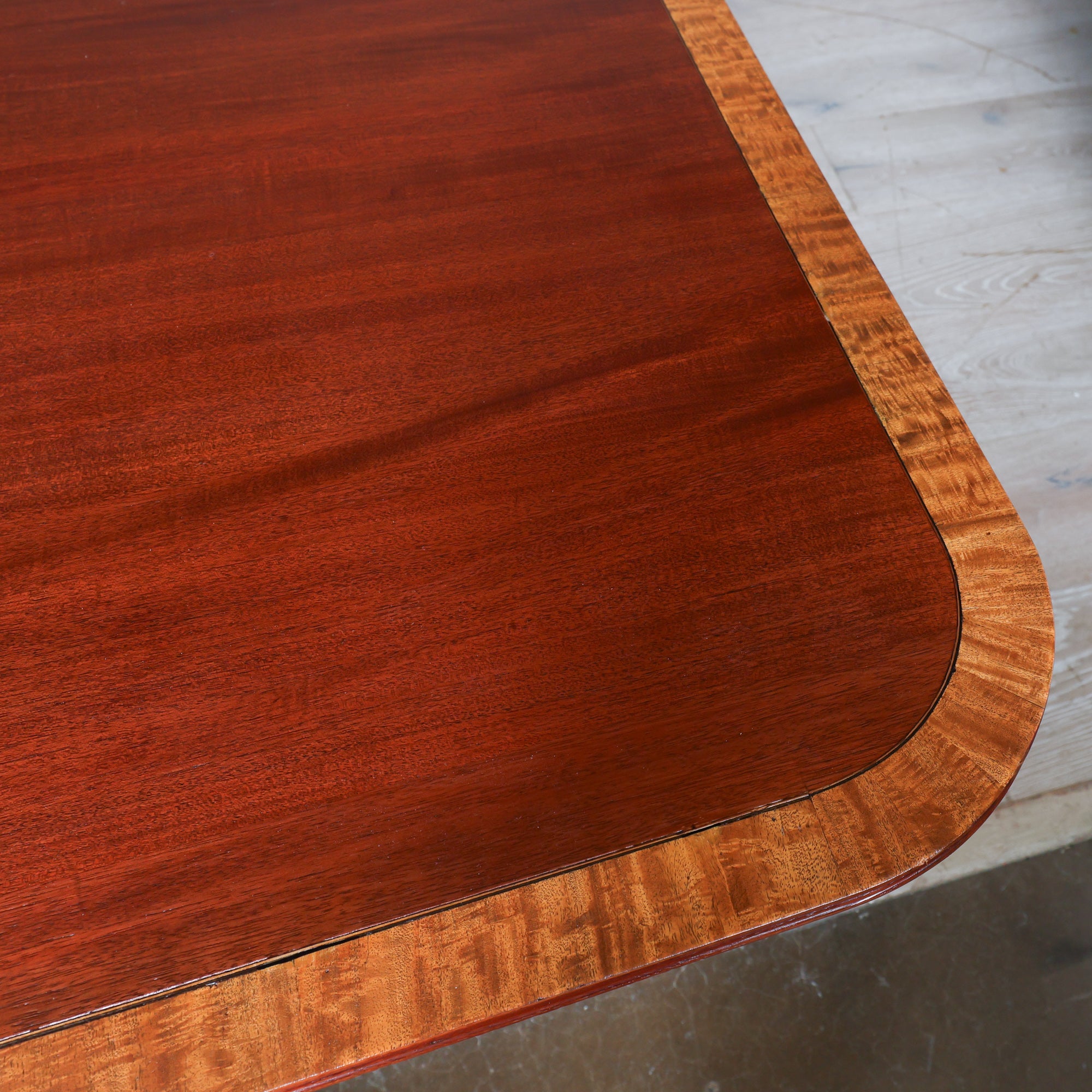 Refinished English Regency Style Banded Mahogany Triple Pedestal Dining Table, 20th c.