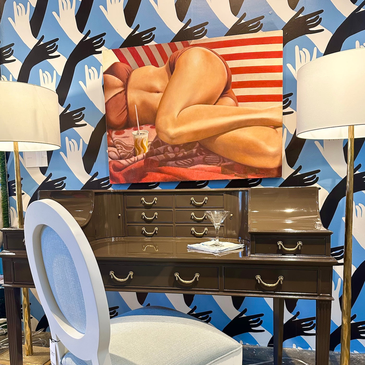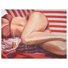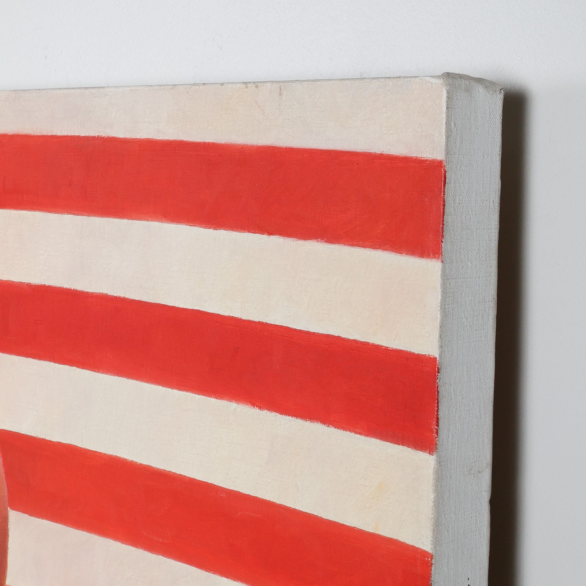 This vintage figurative painting captures the ease of a sun-soaked afternoon. We love the stripe details, rich brushstrokes, and retro charm in this piece.