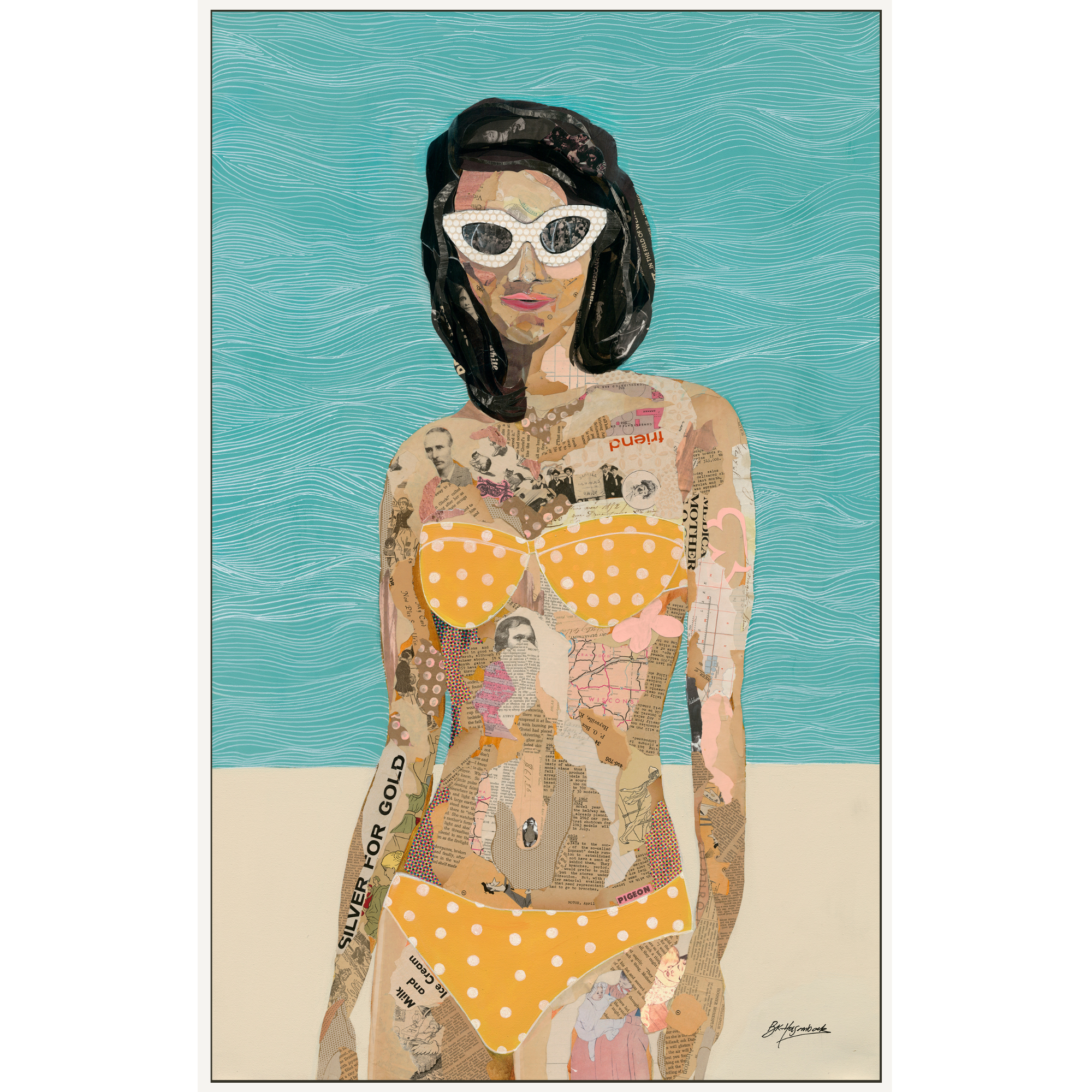 "Yellow Polka Dot Bikini" 48x30 Mixed Media on Canvas by BK Holsomback