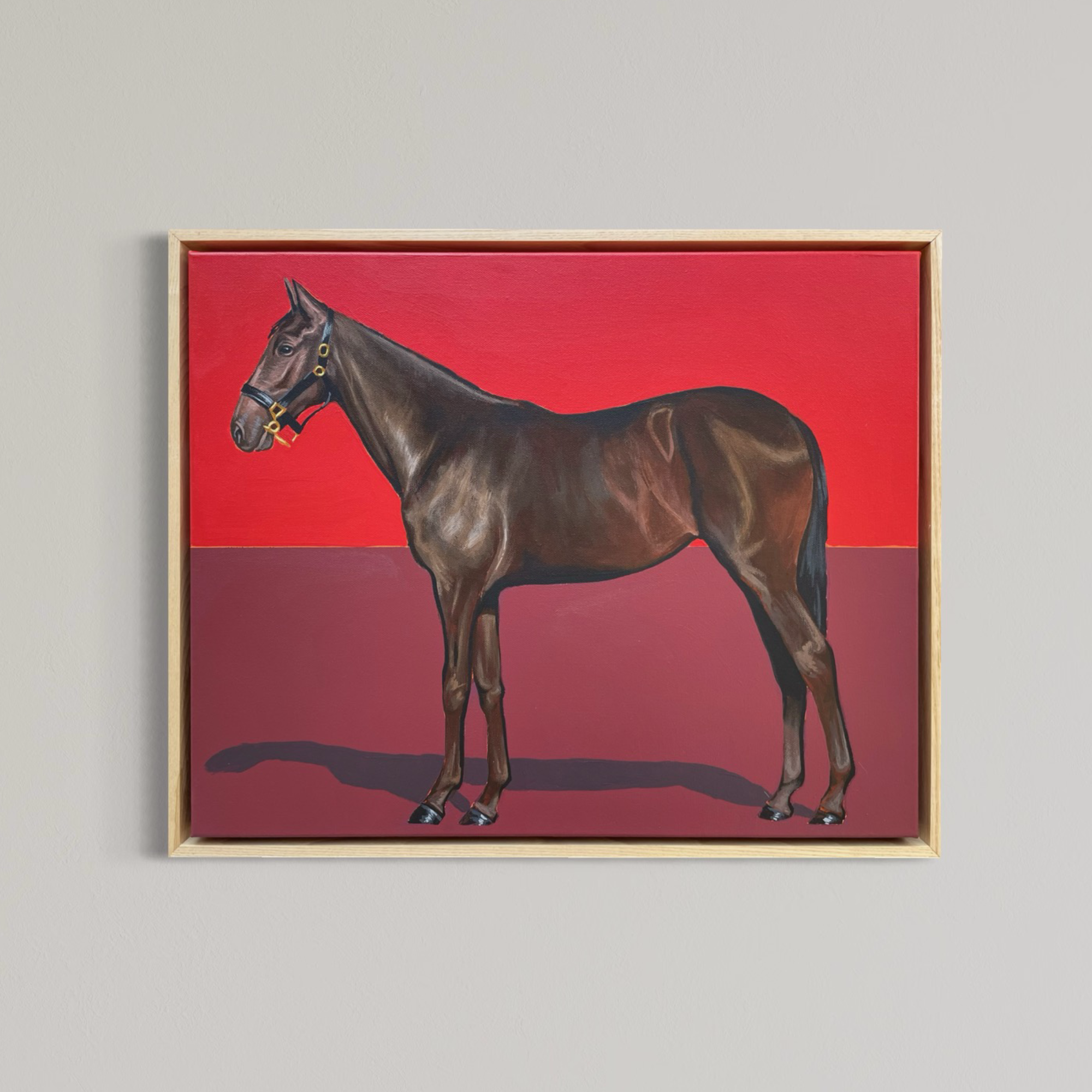 "Horse in Vermillion" by Tanner Muse is an original framed acrylic painting on canvas.