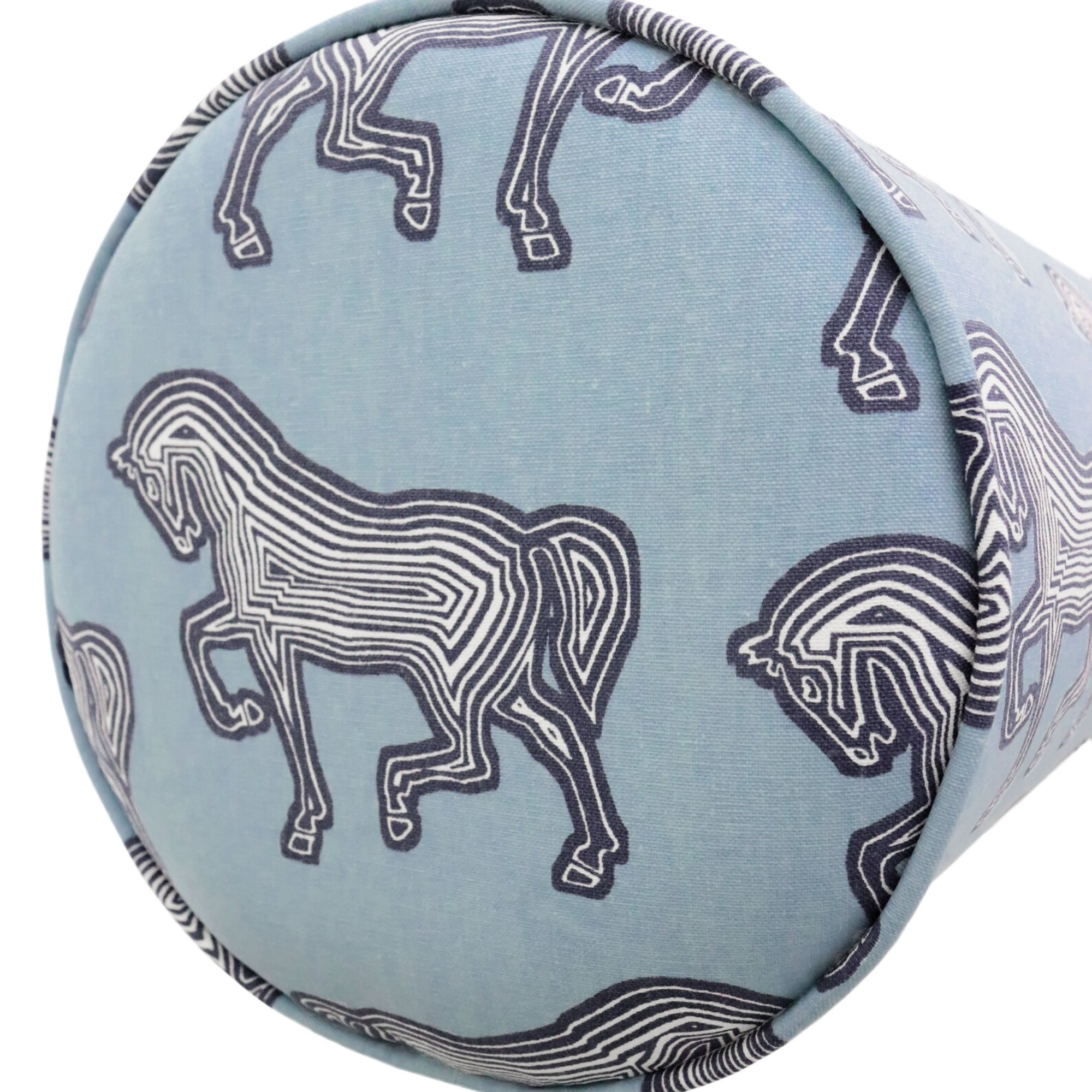 In Stock 24” Bolster Pillow in Blue Horse Fabric