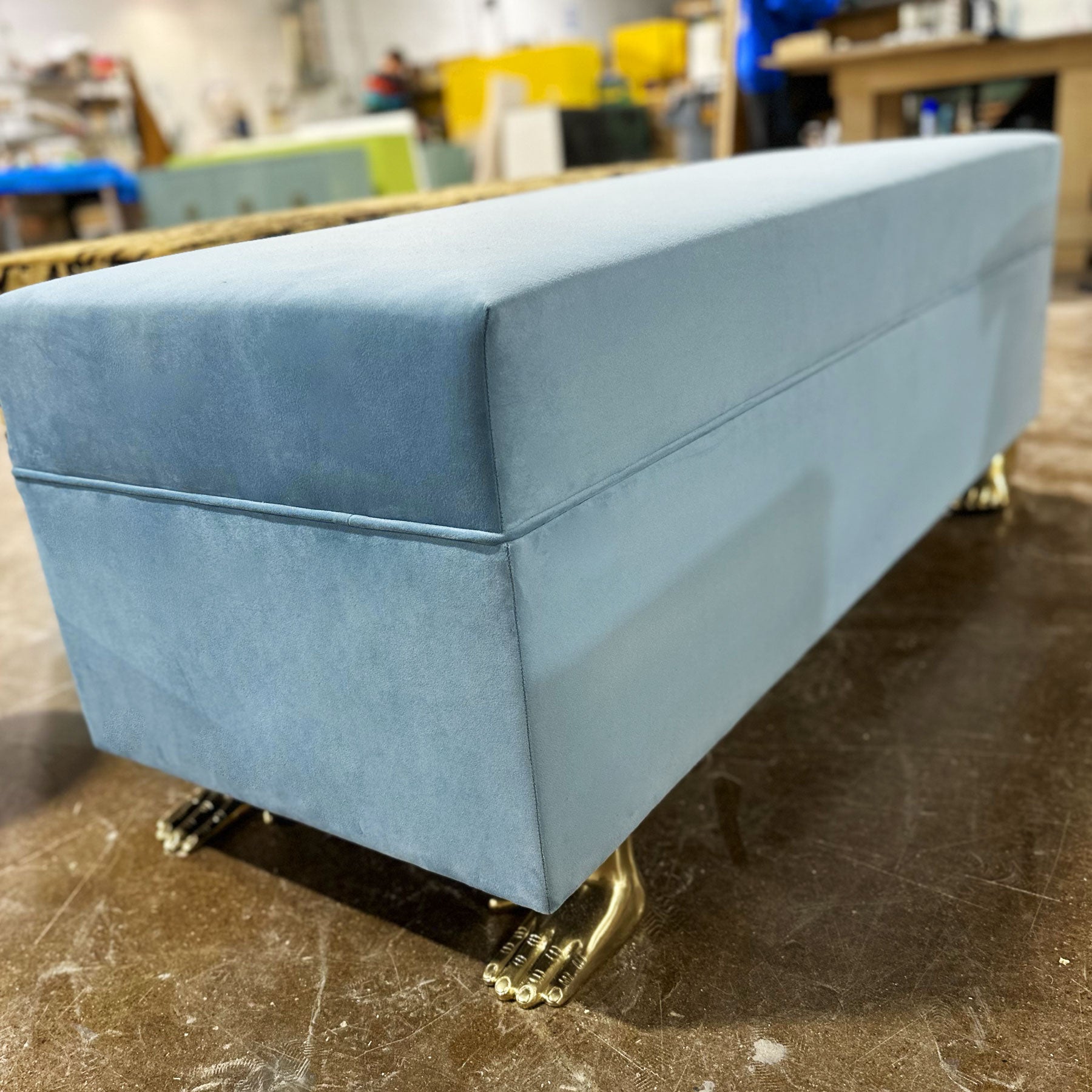 In Stock Triomphe Bench in Bluebird Velvet