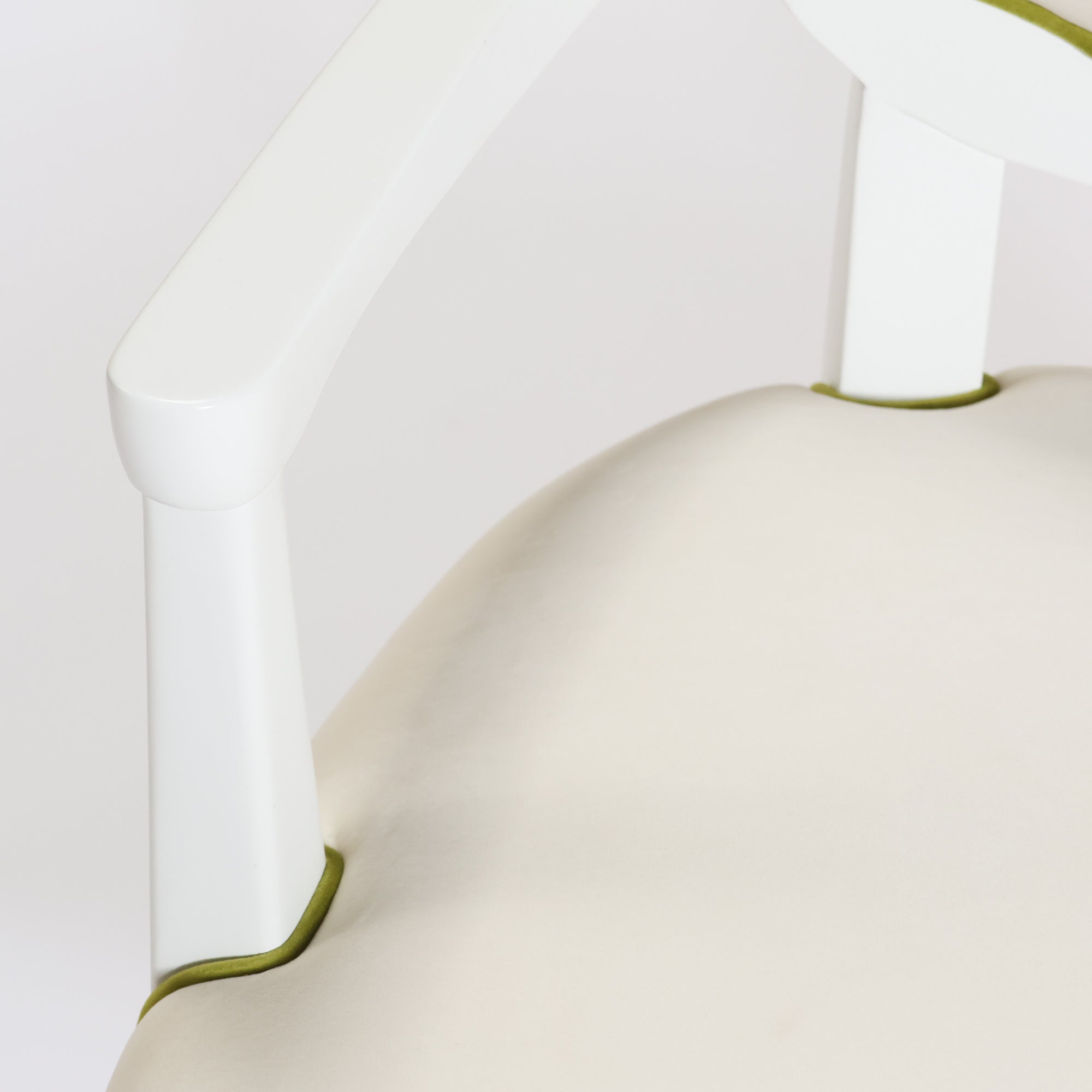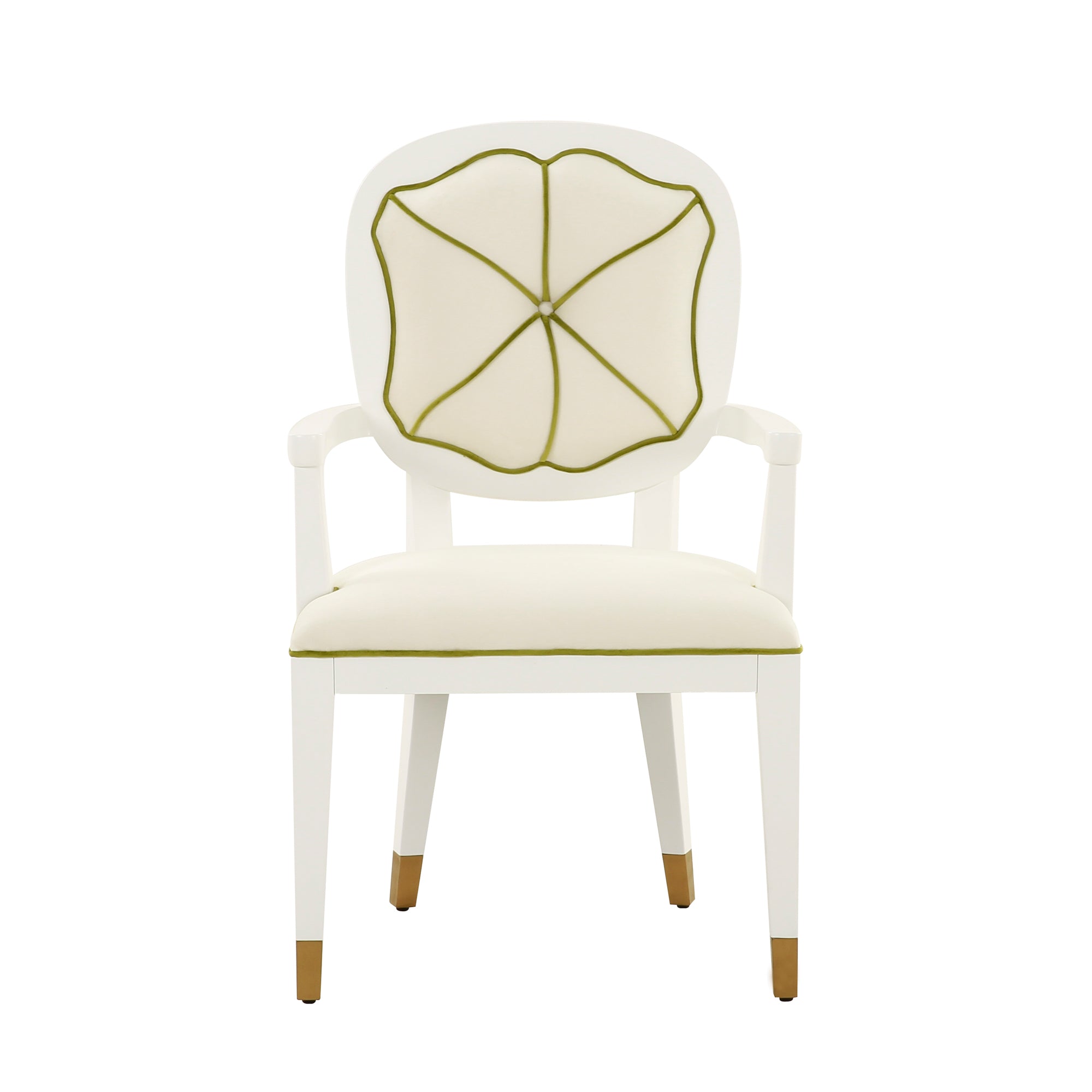 Straight lines set off the rounded backrest on this sweet seat, while velvet upholstery provides a luxe feel. Contrast piping in forest green adds a touch of intrigue to this captain's chair. Elevated entertaining at its best!