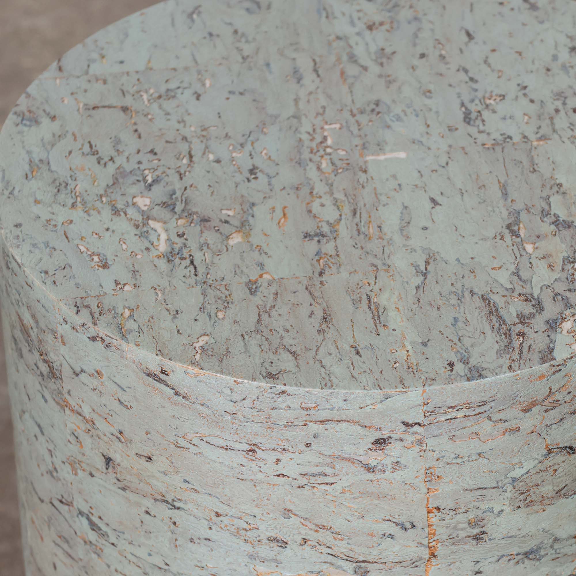 Crafted with a cylindrical silhouette, this table showcases a rich green textured cork finish reminiscent of natural stone. A sleek black base provides a subtle contrast, grounding the design with a modern touch. Perfect for use as a side table, nightstand, or decorative stand, the Ambrose effortlessly blends functionality with style.