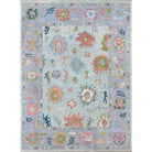 Our Blythe rug boasts a pale blue palette with warm accents for a oushak that will sweetly soothe in any space.