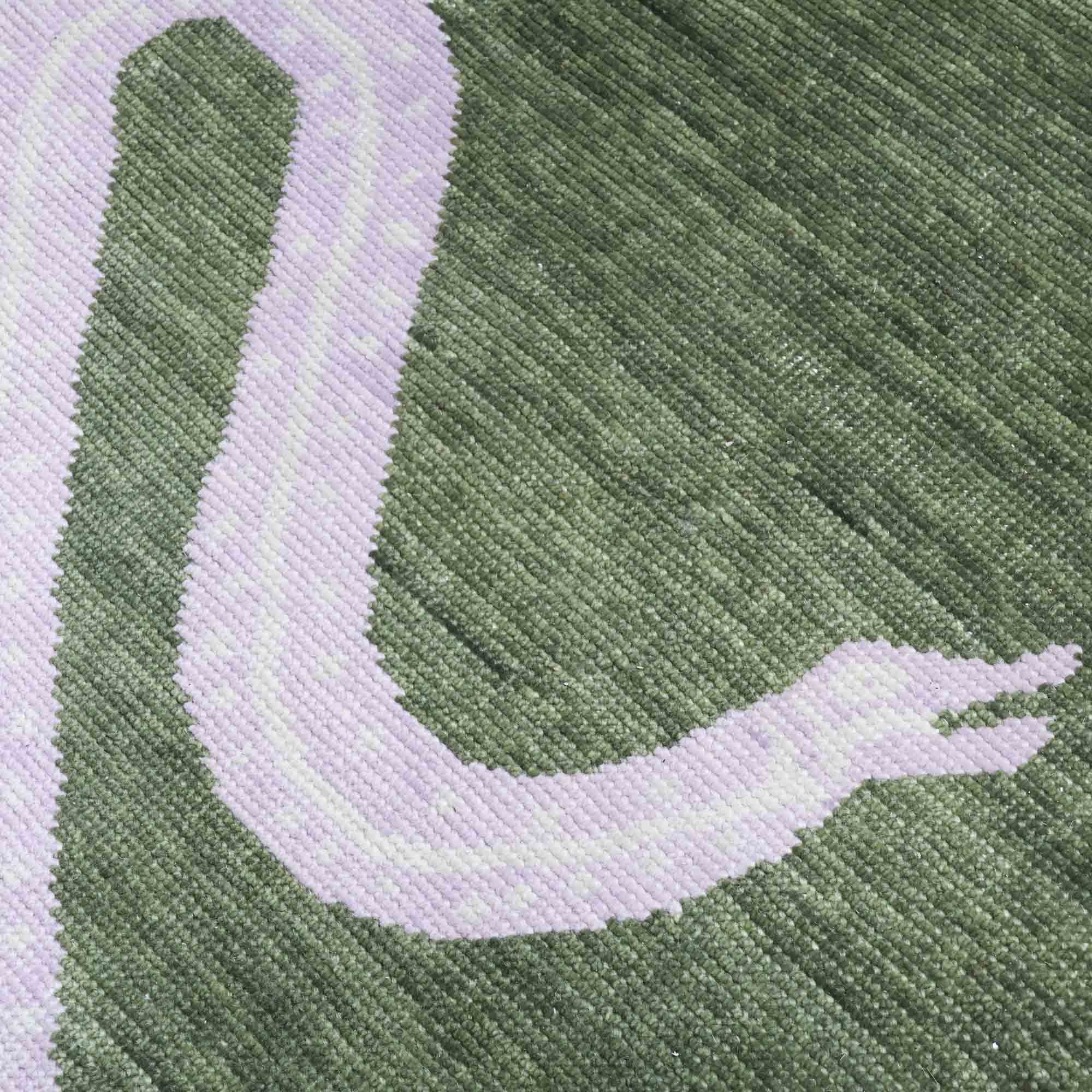 Come slither y'all. We are obsessed with our Viper design in tufted and turkish knot. The olive color way brings the outside in with a rich green background.