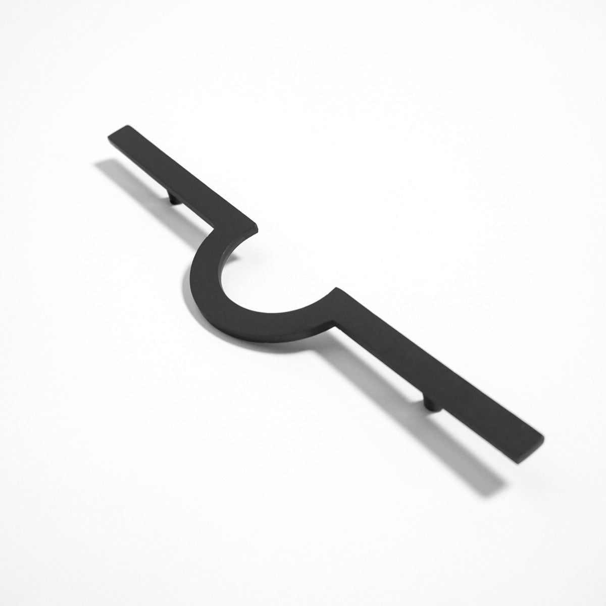 Semicircular handle hardware with a matte black finish. Use for drawers or cabinets.