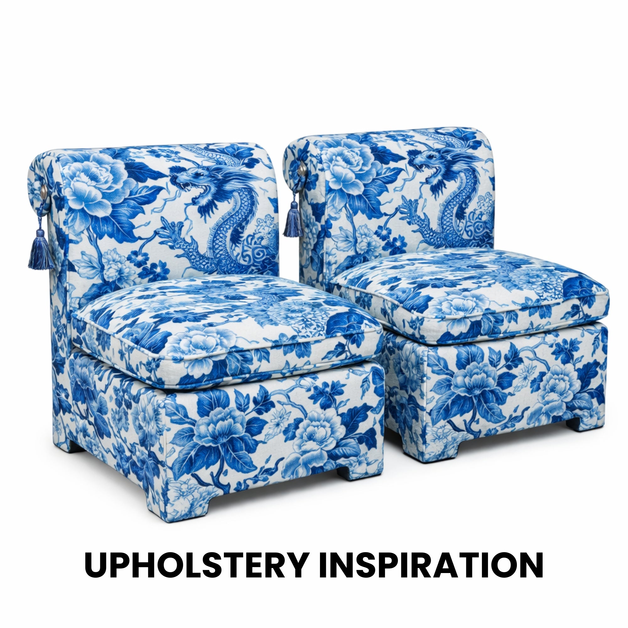 Climbing Vines Blue Green Fabric With Clario Ice Velvet Piping