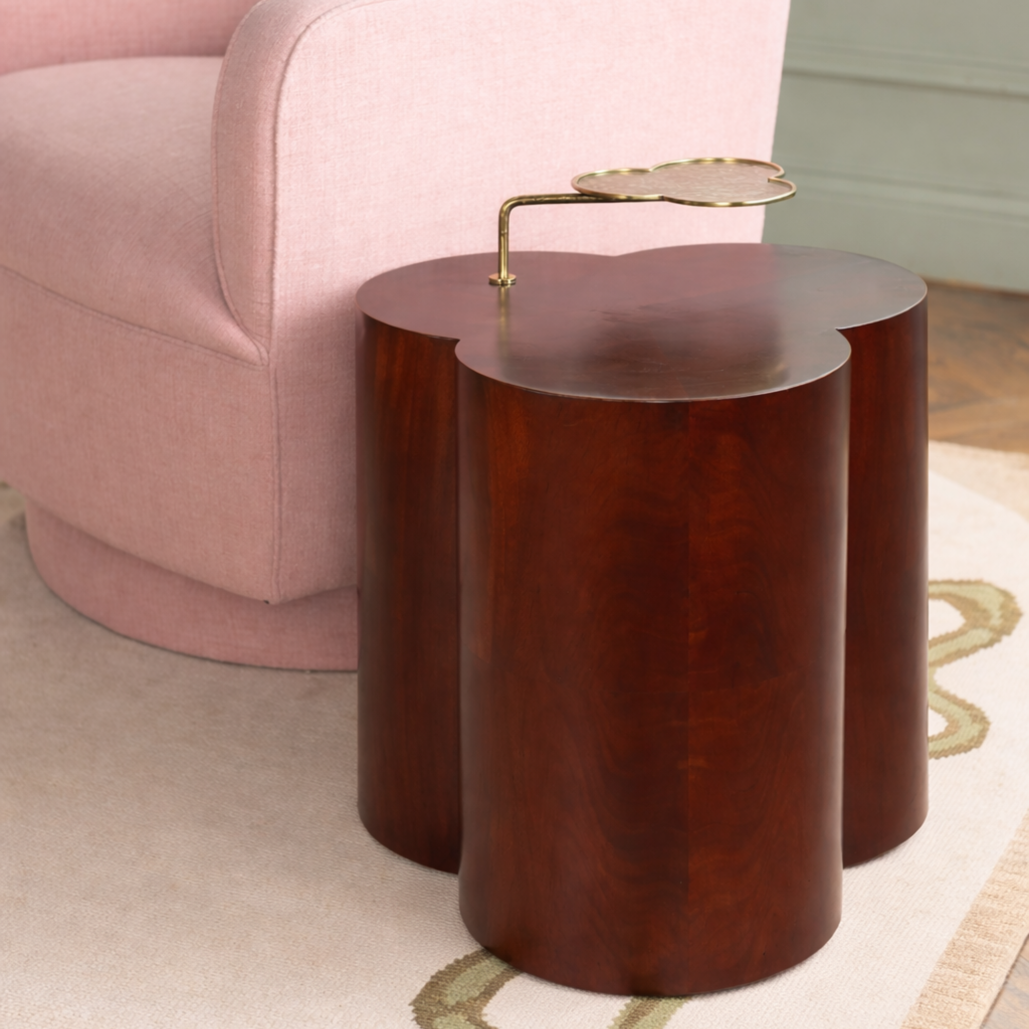 Timeless yet undeniably bold, our Gloria Side Table nods to classic form while feeling entirely fresh. Wrapped in rich mahogany veneer, her clover silhouette softens the room with curves while the deep, lustrous grain brings warmth and depth from every angle.