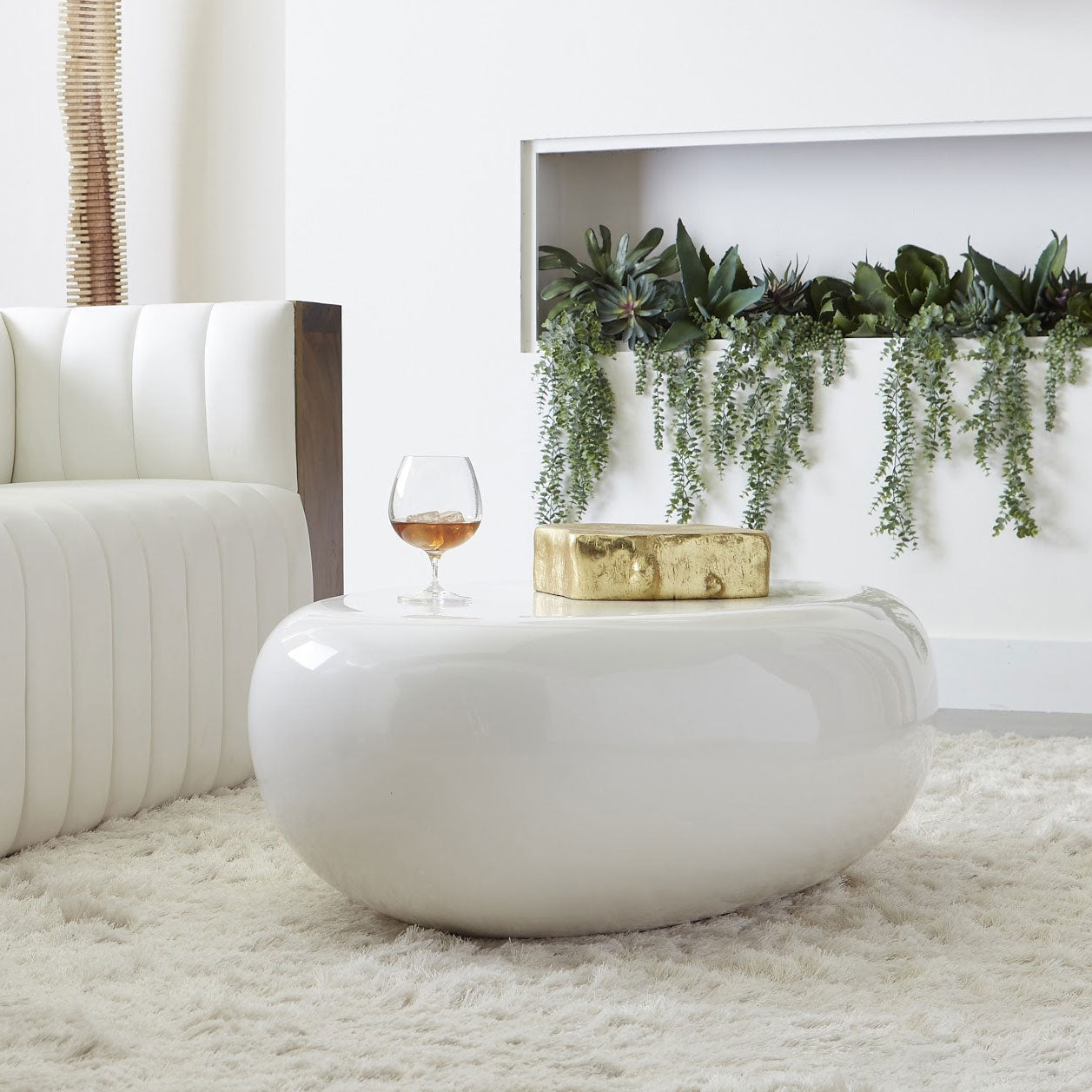 There is something mesmerizing about the power of water and how it softens rock into a water-worn stone. Designer Jason Phillips found inspiration in nature's ability to shape a hard surface into something beautiful when he envisioned the River Stone collection, which includes the River Stone Small White Coffee Table.