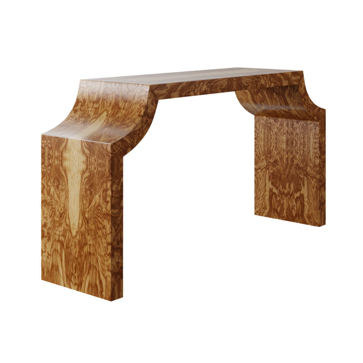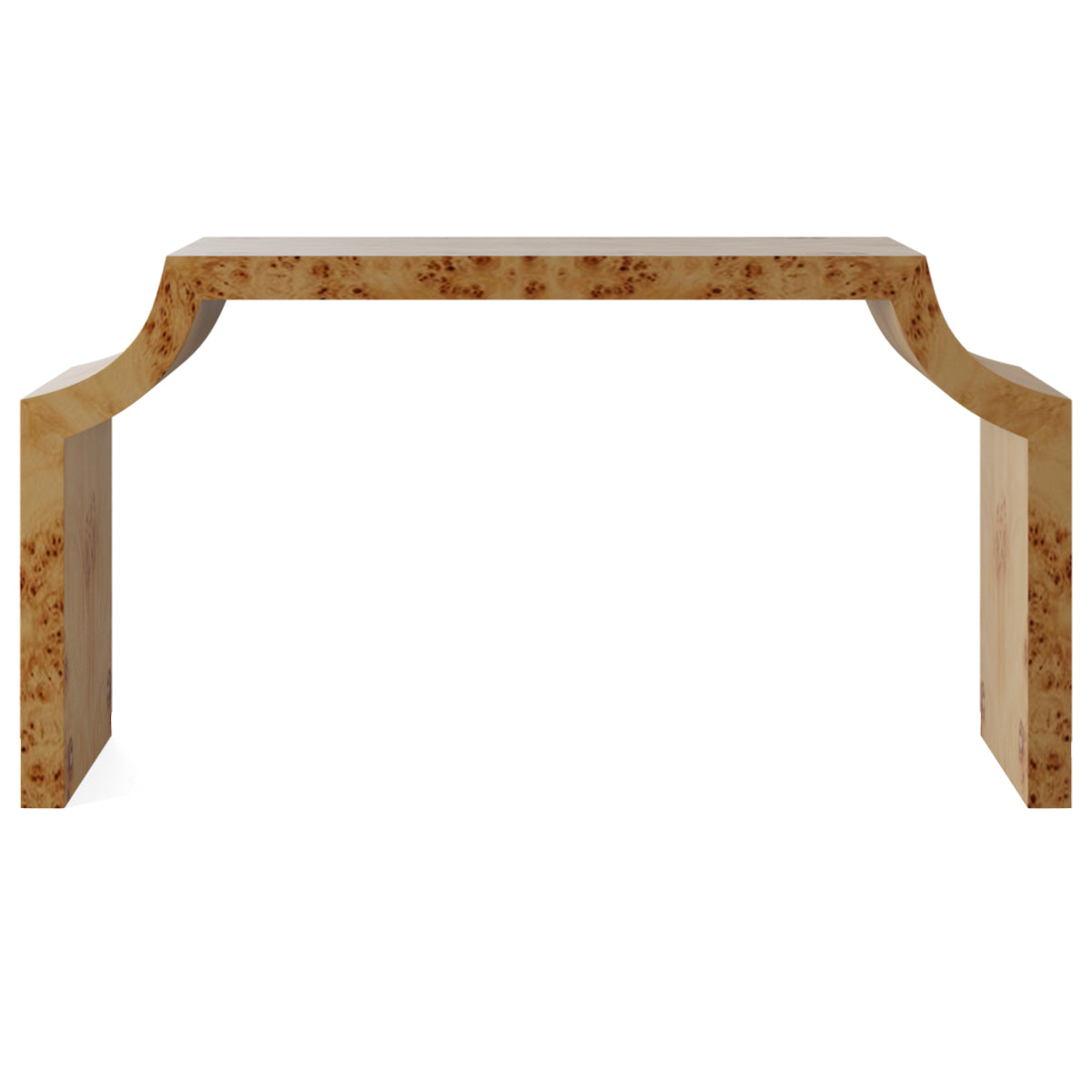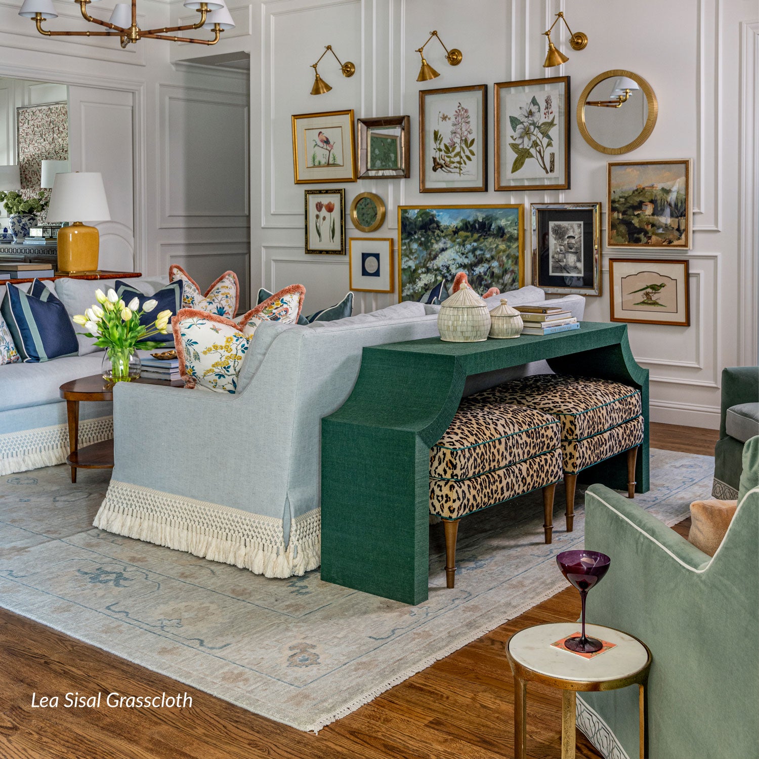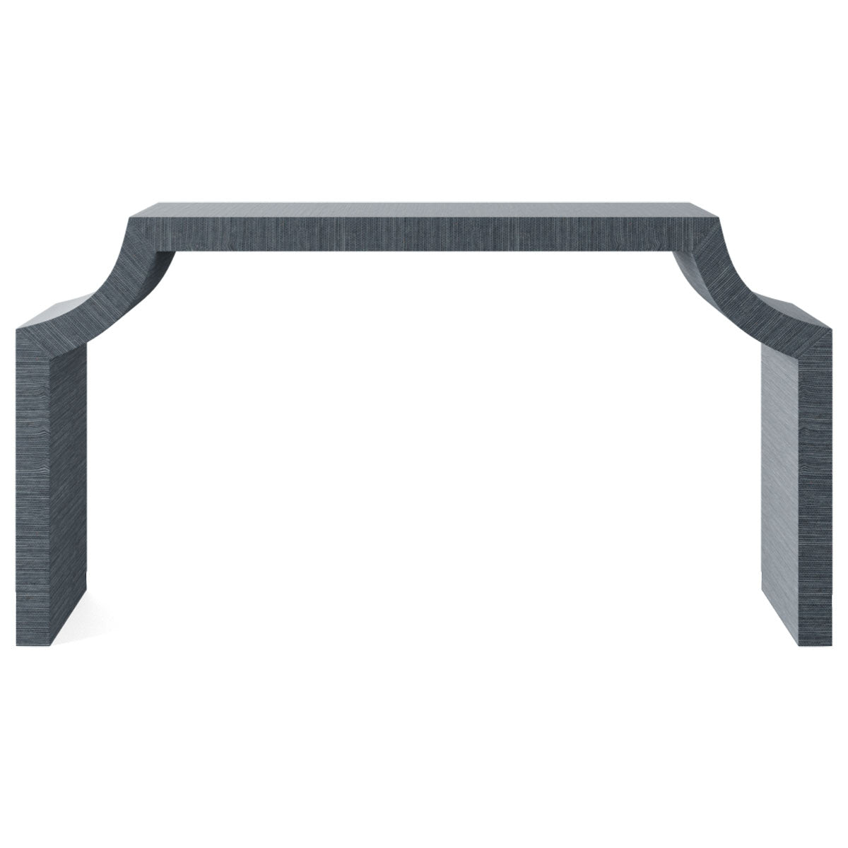 Whether you opt for a wood or grasscloth finish, this unique console table is ready to bring on the visual intrigue.