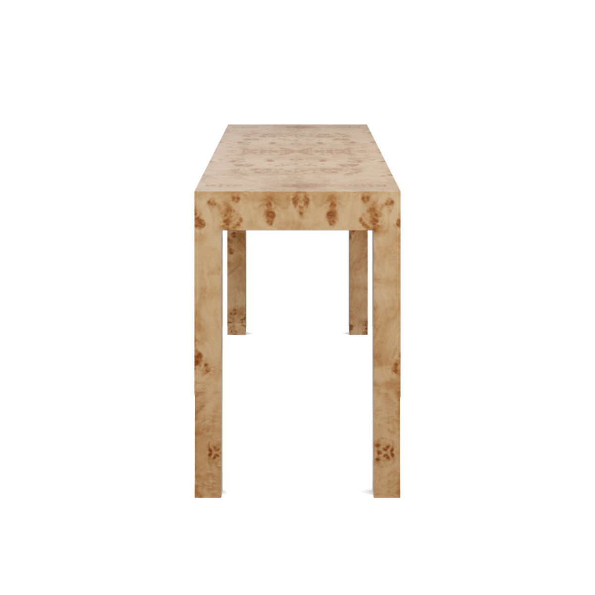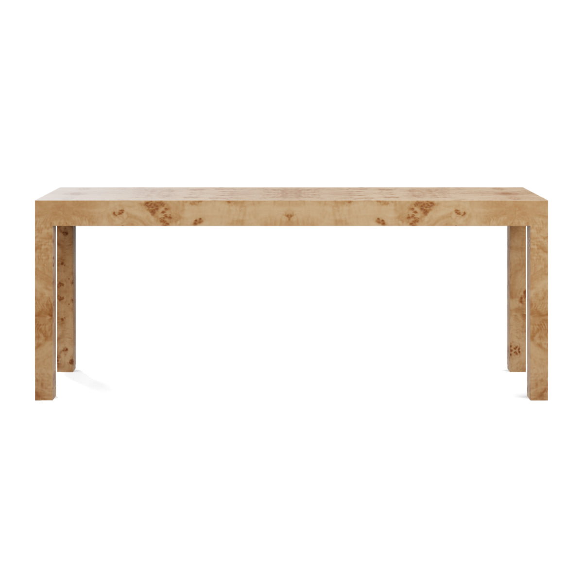The simple and streamlined feel of this Parsons style piece is the perfect canvas for beautiful burl wood to shine. You can't go wrong with this timeless design.