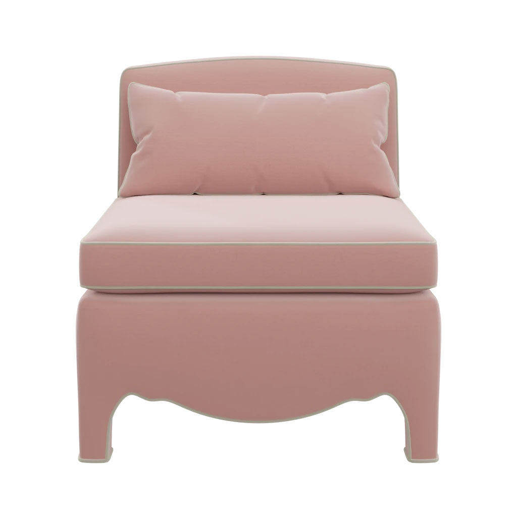Featuring arabesque curves and softened corners, Prima Donna is ready to pirouette her way into your space. Her armless design is ideal for sitting back and sinking into plush cushioning, while a sumptuous & supportive back pillow gracefully completes the look.
