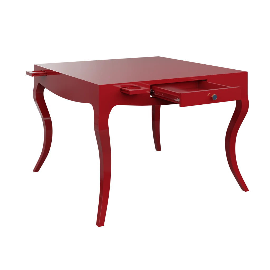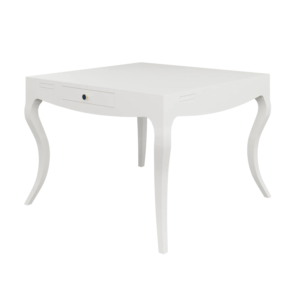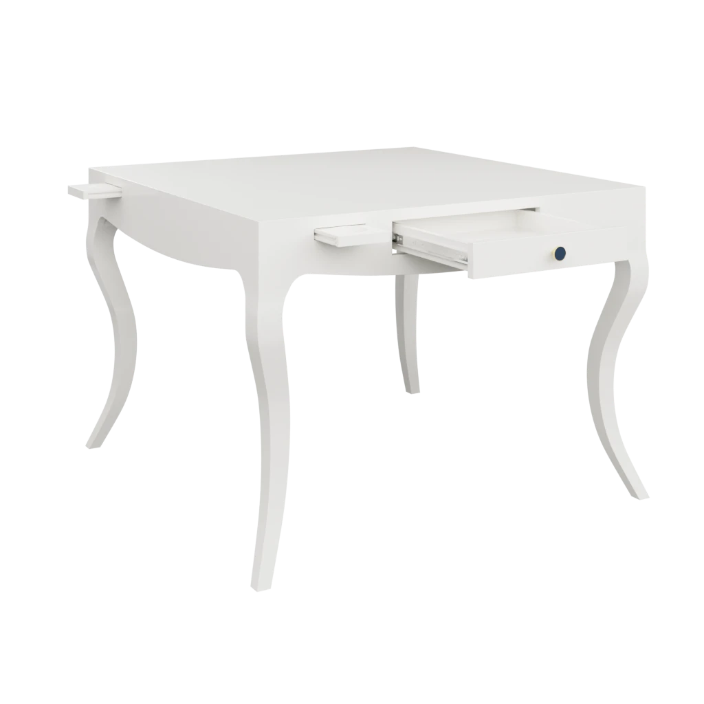 Our Champagne Problems Game Table features a subtle bowed front that gives way to stylized cabriole legs. 2 pull out drawers on opposite ends are the perfect place to store your game night essentials, while a smooth top is the ultimate throne for your favorite Mahjong set. 4 push-close cupholders to envelope your drink-of-choice ensure your place will be THE place for game night from here on out.