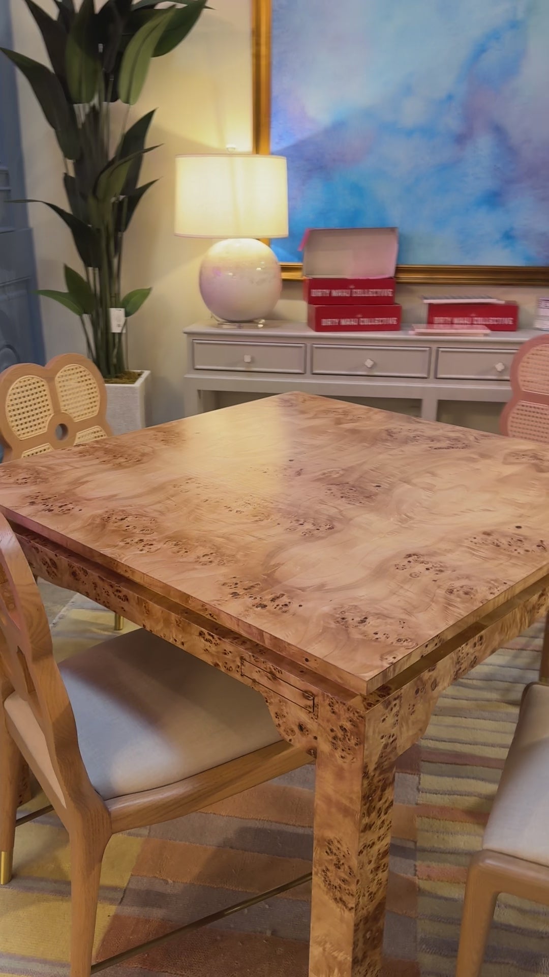 Our team created a custom Pass the Rosé Game Table for the holidays in Golden Pecan Mappa Burl. What's merrier than this?