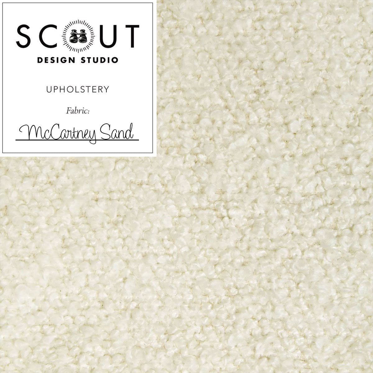 Sample of our McCartney Sand Boucle upholstery fabric by the yard.