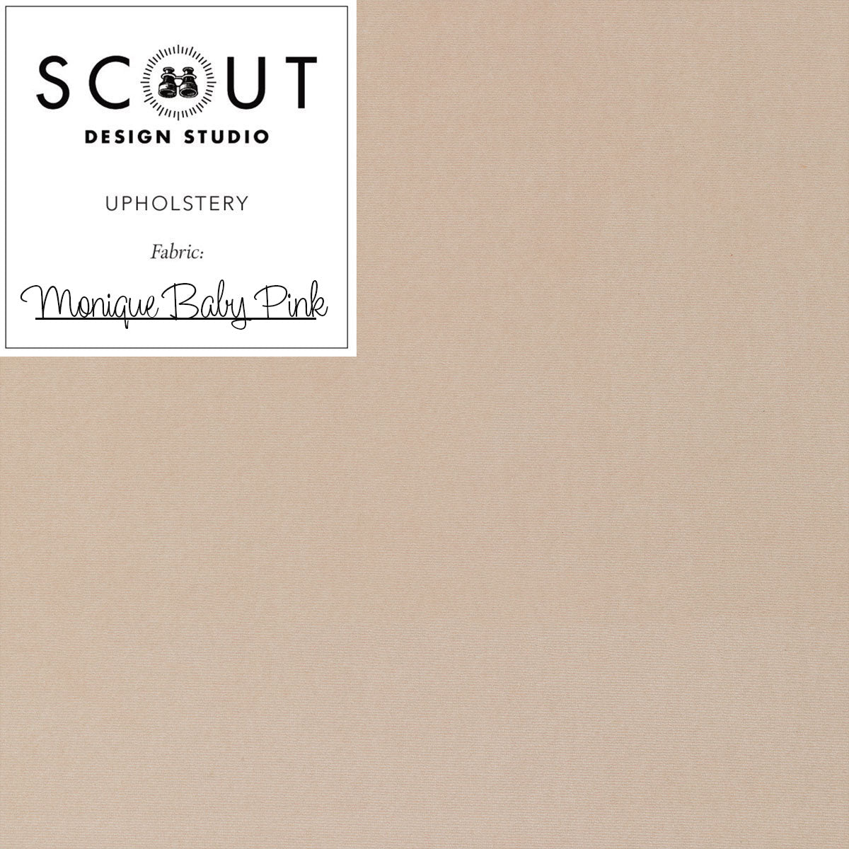 Sample of our Monique Baby Pink Velvet upholstery fabric by the yard.