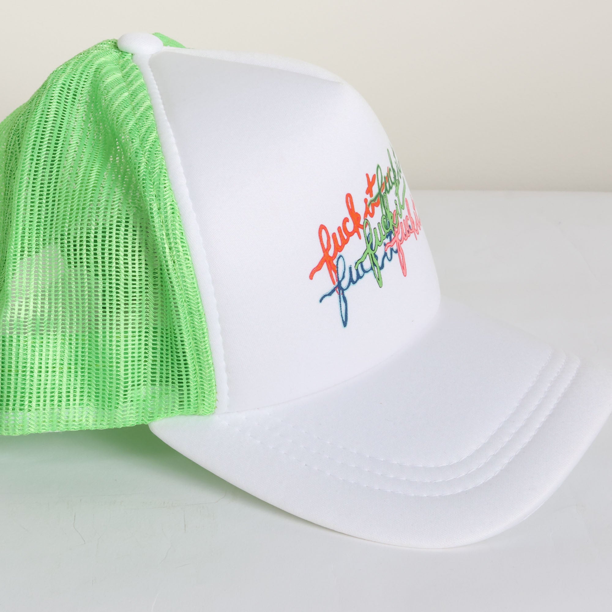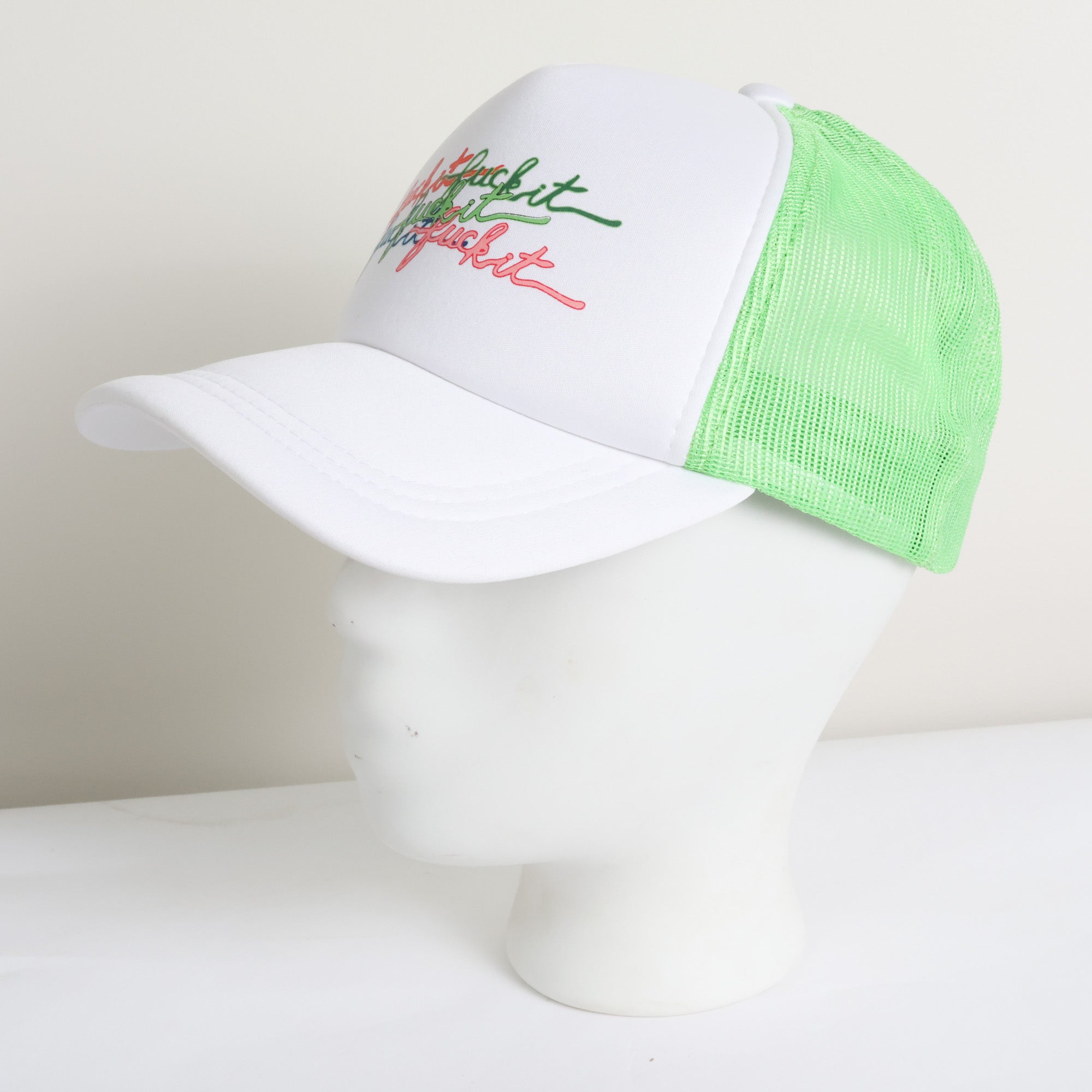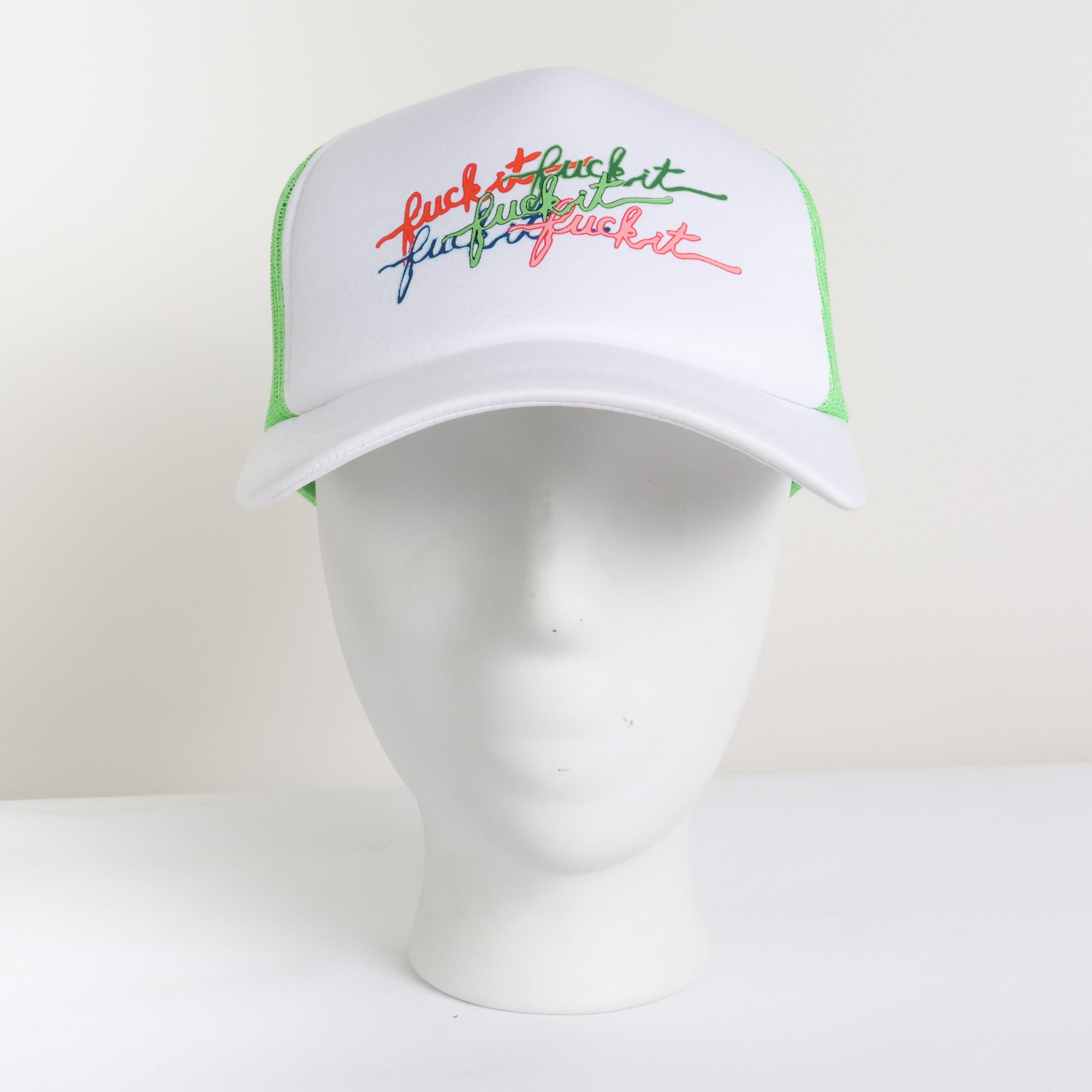 These trucker hats with "fuck it" text and neon green mesh are a bigggg mood for sure.
