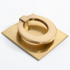 Round brass hardware pull with matching square backplate. Now available in a larger size! Shop the smaller size here.