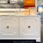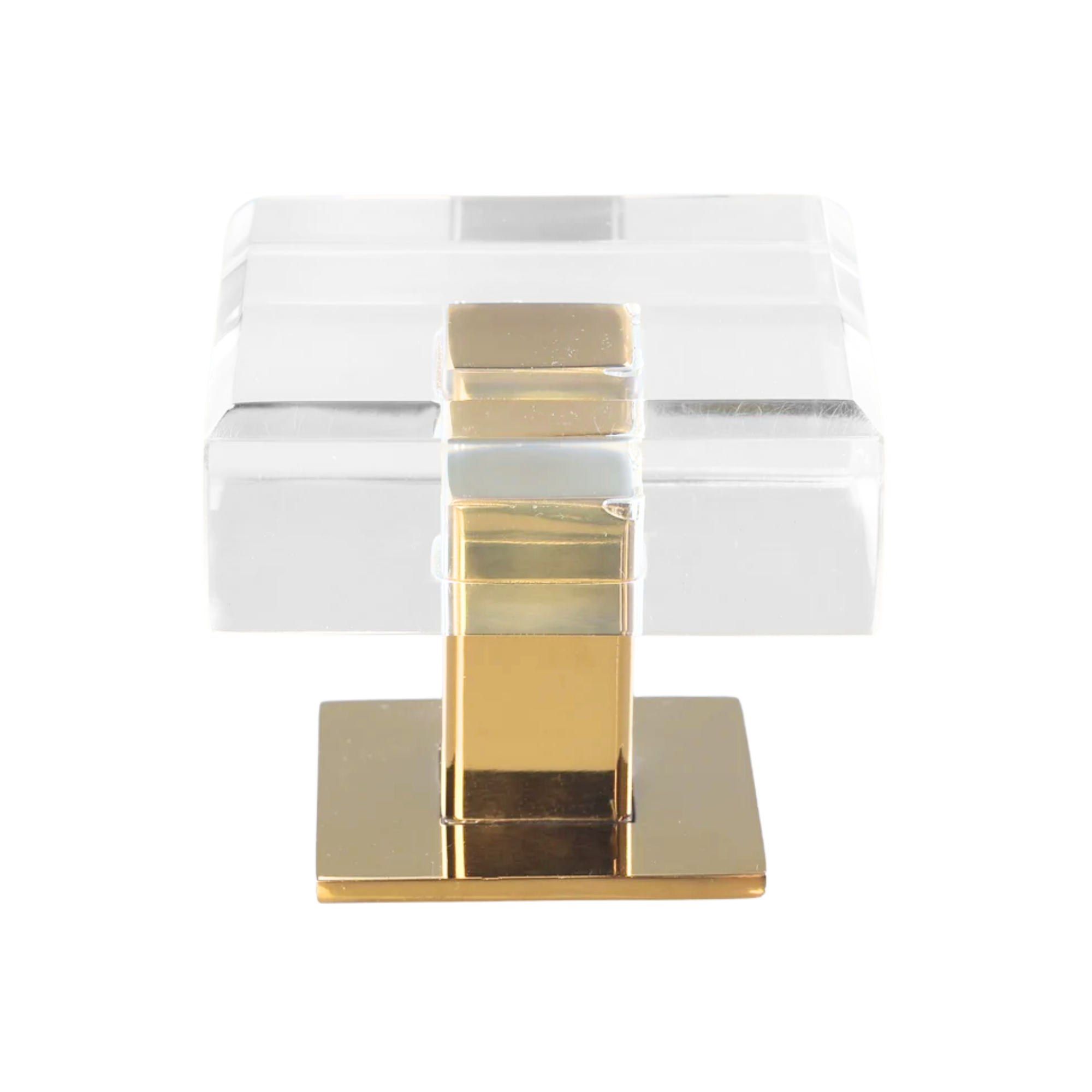 Oversized acrylic and brass dresser or cabinet knob as seen on our Custom Amelia Credenza. Polished gold finish.