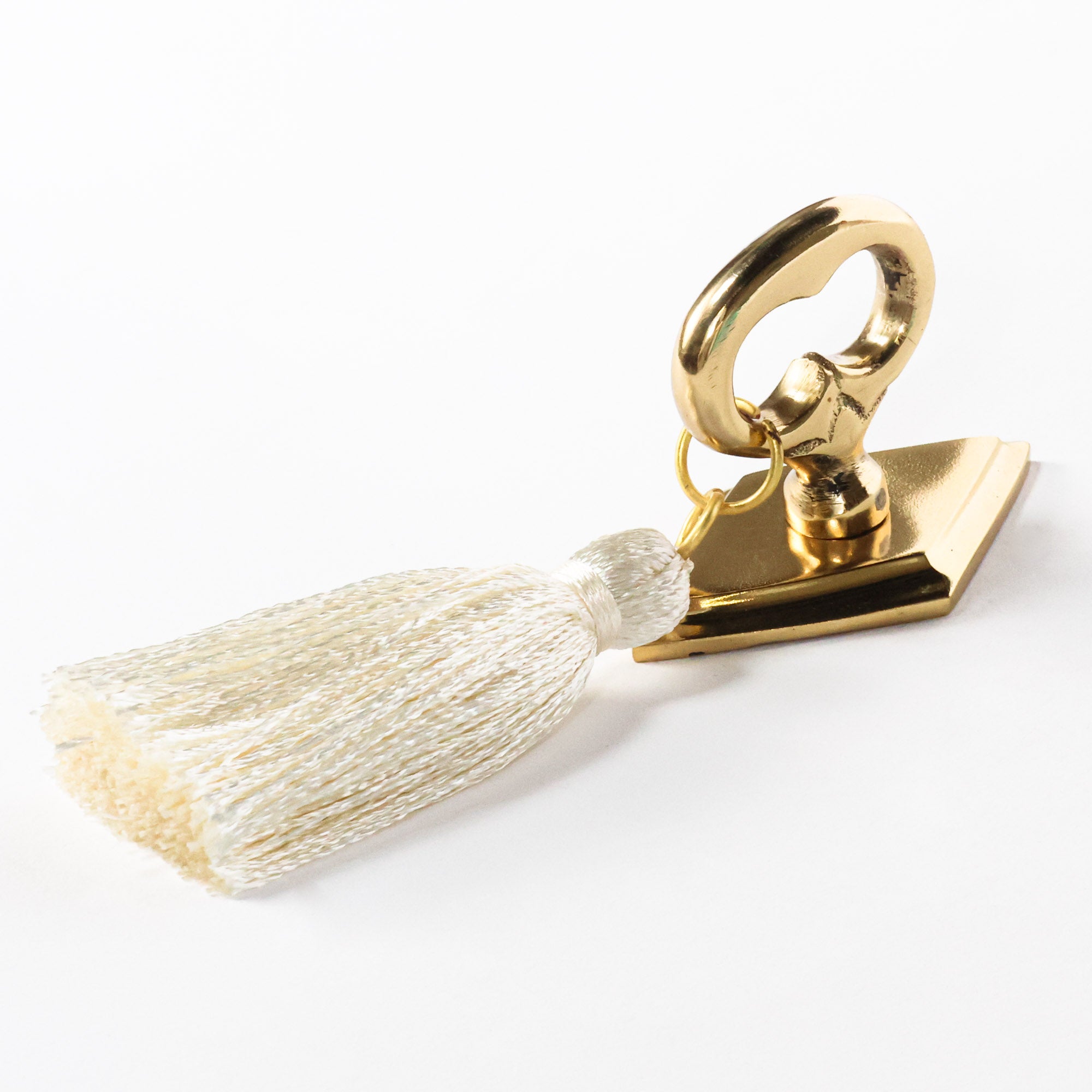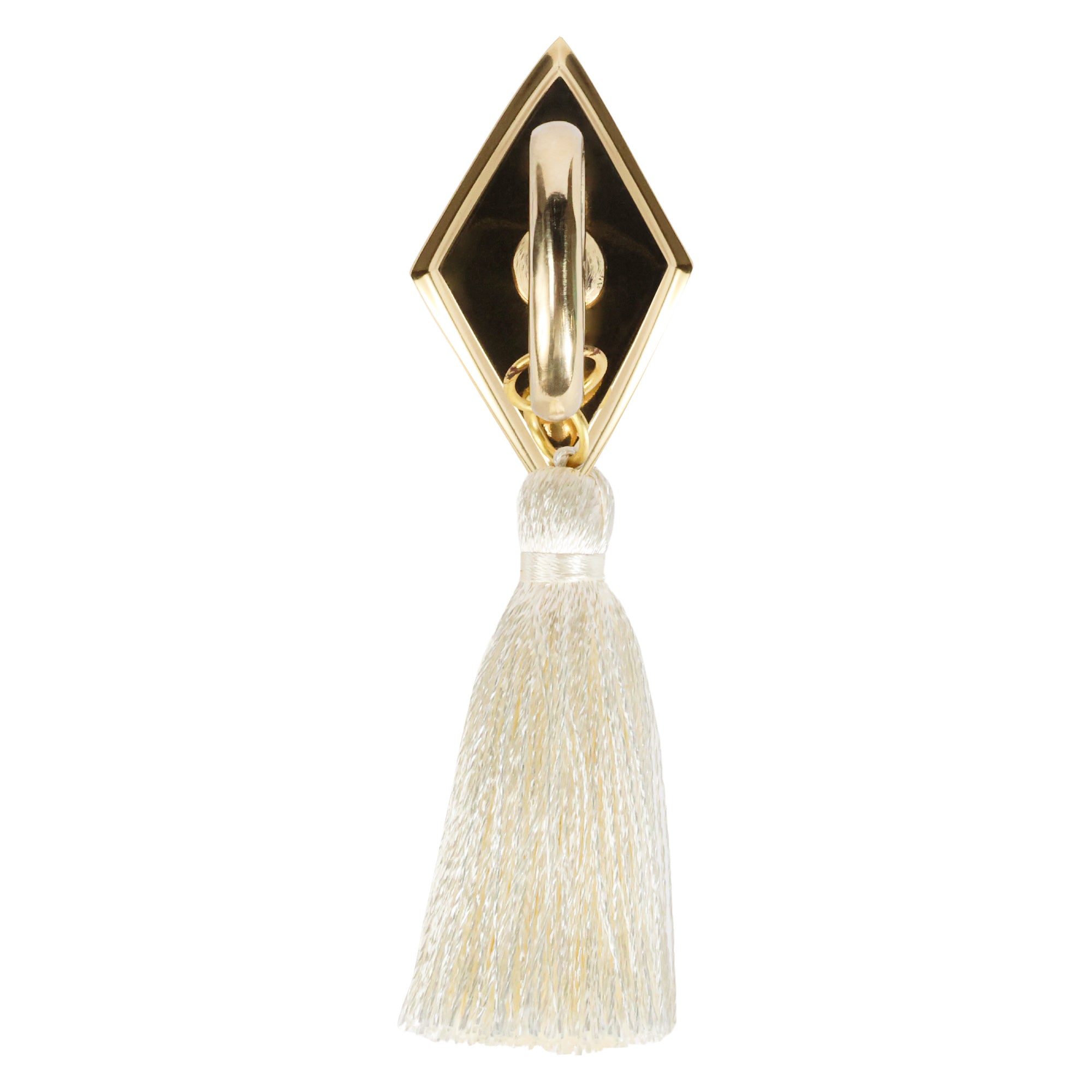 Our Tassel Knob features a diamond brass backplate and ring pull with carved details.