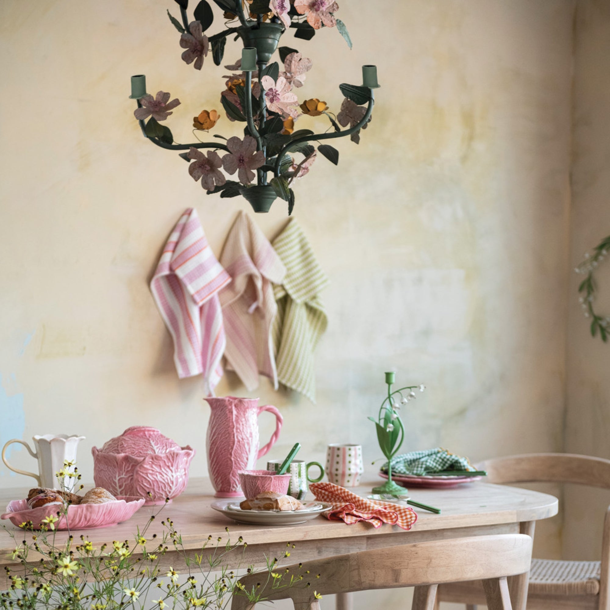 Turn your ceiling into a blooming garden with this vintage-inspired toleware chandelier. Covered in hand-painted flowers and leafy details, it brings a soft, romantic glow and a little old-world magic wherever it hangs—perfect for dining rooms, bedrooms, or anywhere that could use a bit of charm and personality.