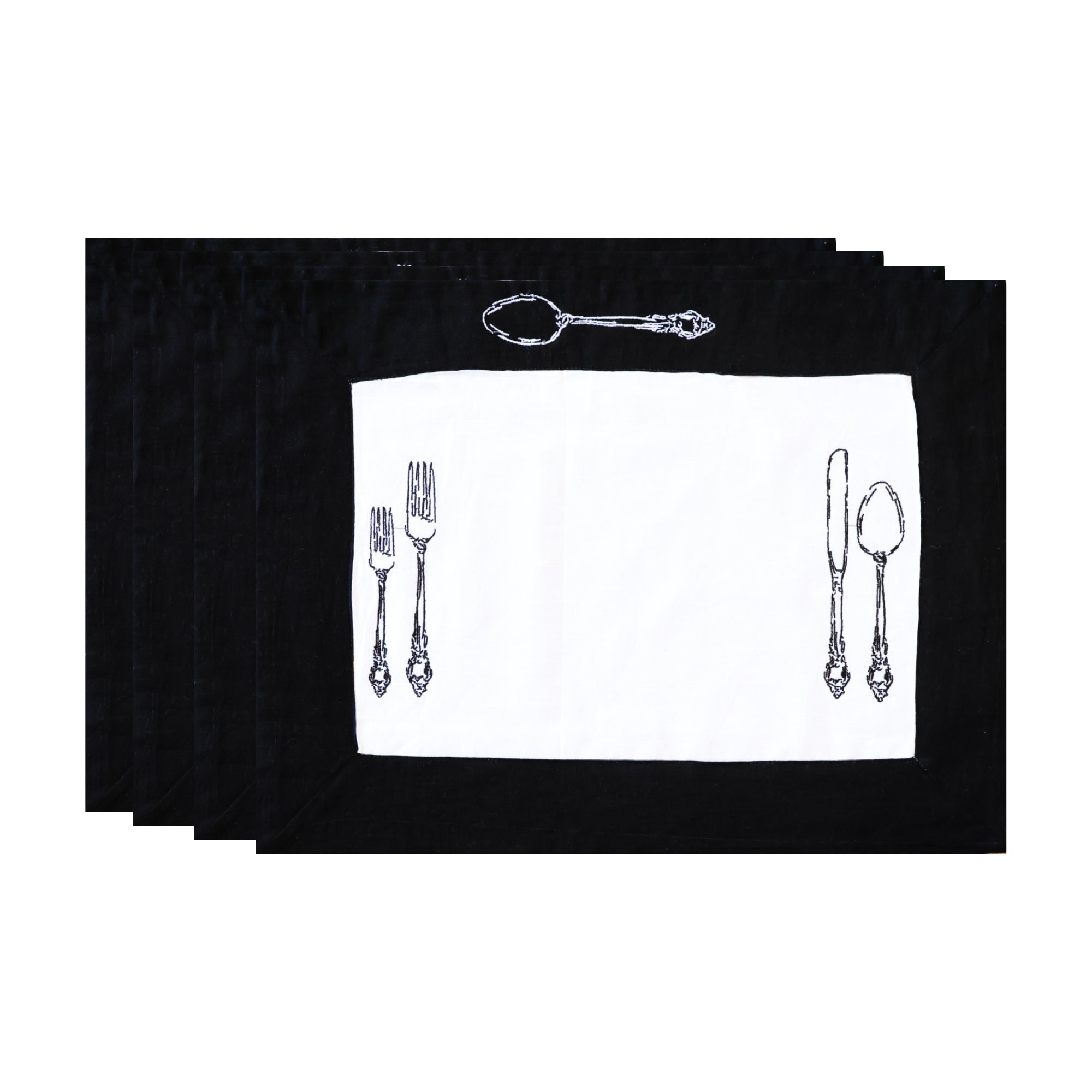 Black & White Linen Placemat - Set of 4