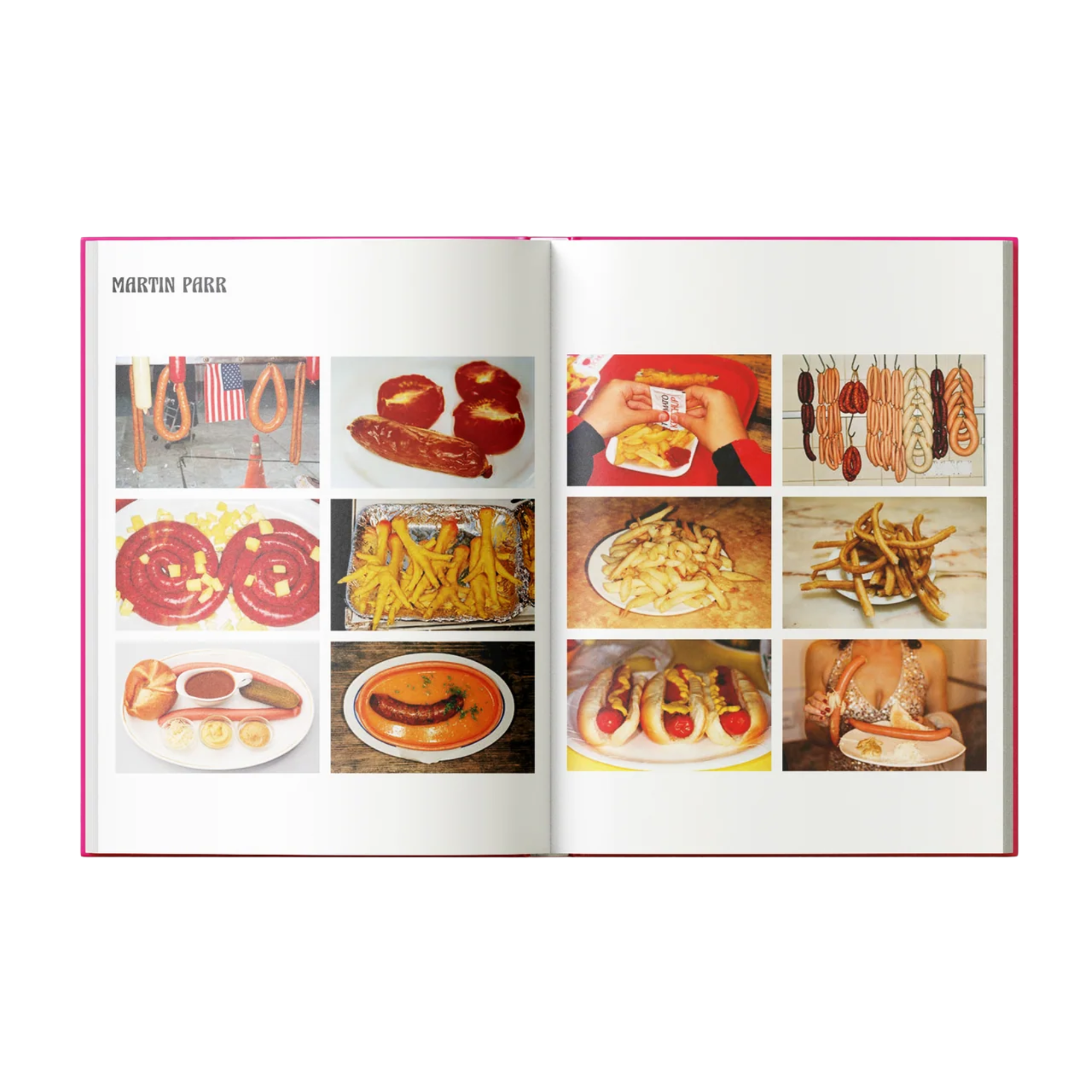 Photographers include: Yevonde Middleton, Harold Edgerton, Erwin Blumenfeld, Walter Chandoha, William Wegman, Hiro, Guy Bourdin, Alex Prager, Juno Calypso, Adrienne Raquel, Miles Aldridge, Ouka Leele, Hassan Hajjaj, Ruth Ossai, Pierre et Gilles, Sandy Skoglund, Martin Parr, Arnold Odermatt, Maurizio Cattelan, Pierpaolo Ferrari.
