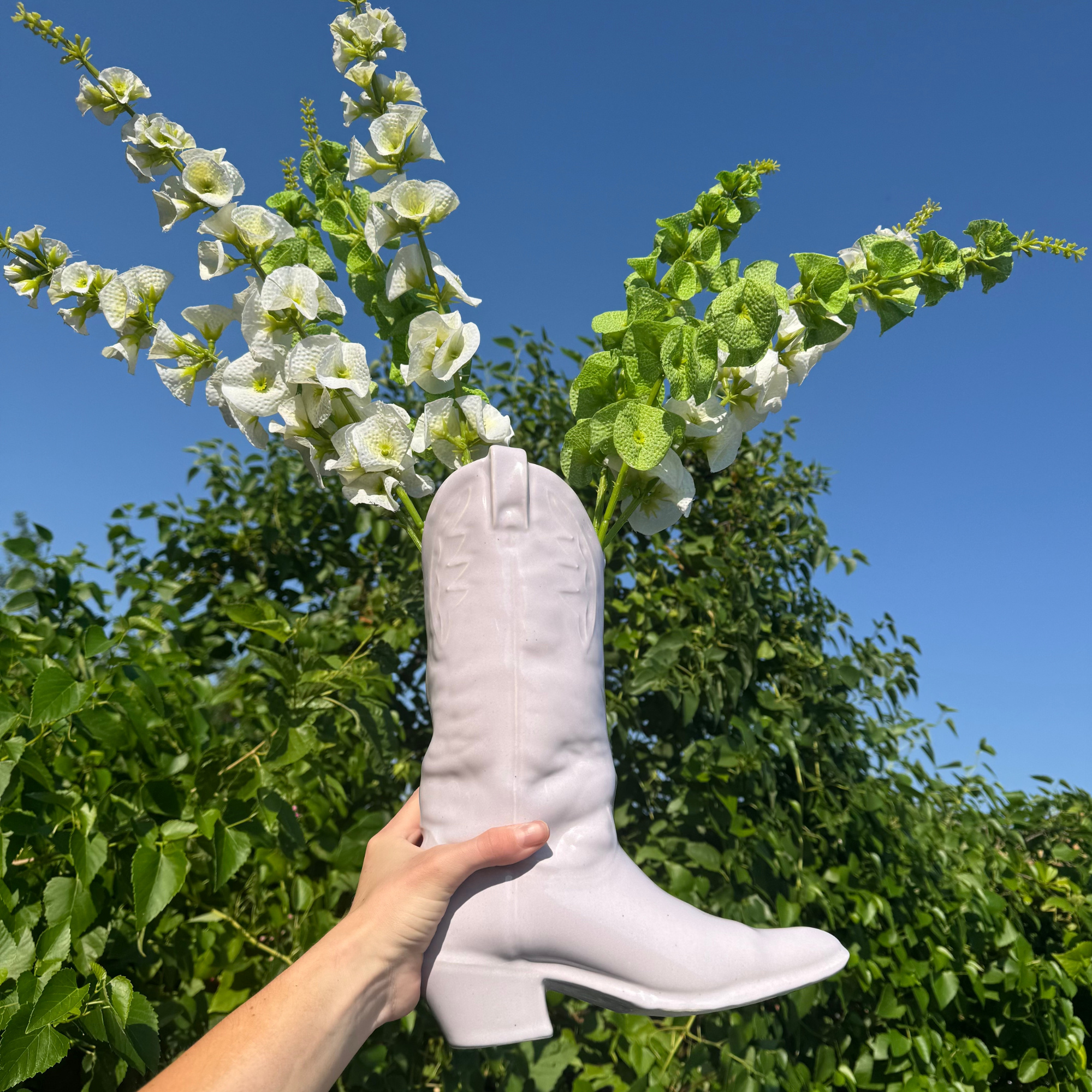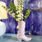 Handmade in Garland, TX by local ceramicists, this ceramic Cowboy Boot Vase is the ultimate vessel for your favorite florals. Featuring a lilac glazed finish, we love this haute take on footwear!