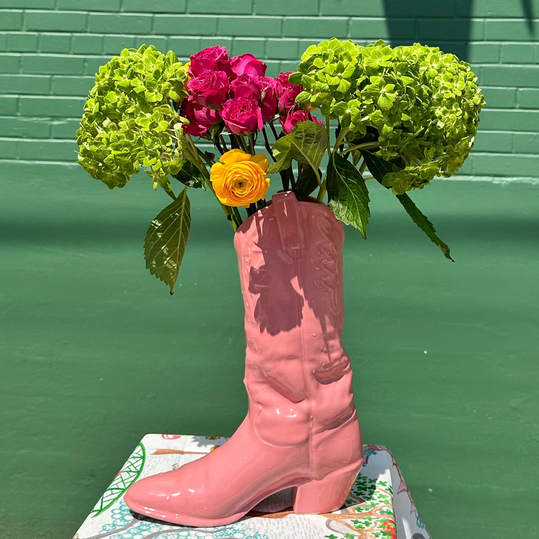 Handmade in Garland, TX by local ceramicists, this ceramic Cowboy Boot Vase is the ultimate vessel for your favorite florals. Featuring a pink glazed finish, we love this haute take on footwear!
