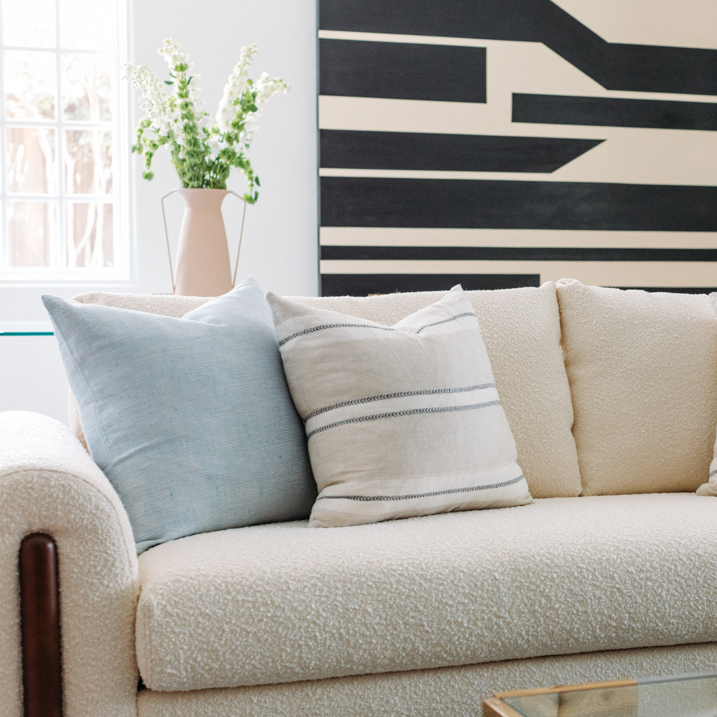 Natural linen pillow for a laid-back, versatile look. We love the minimalist design for an airy and neutral space.