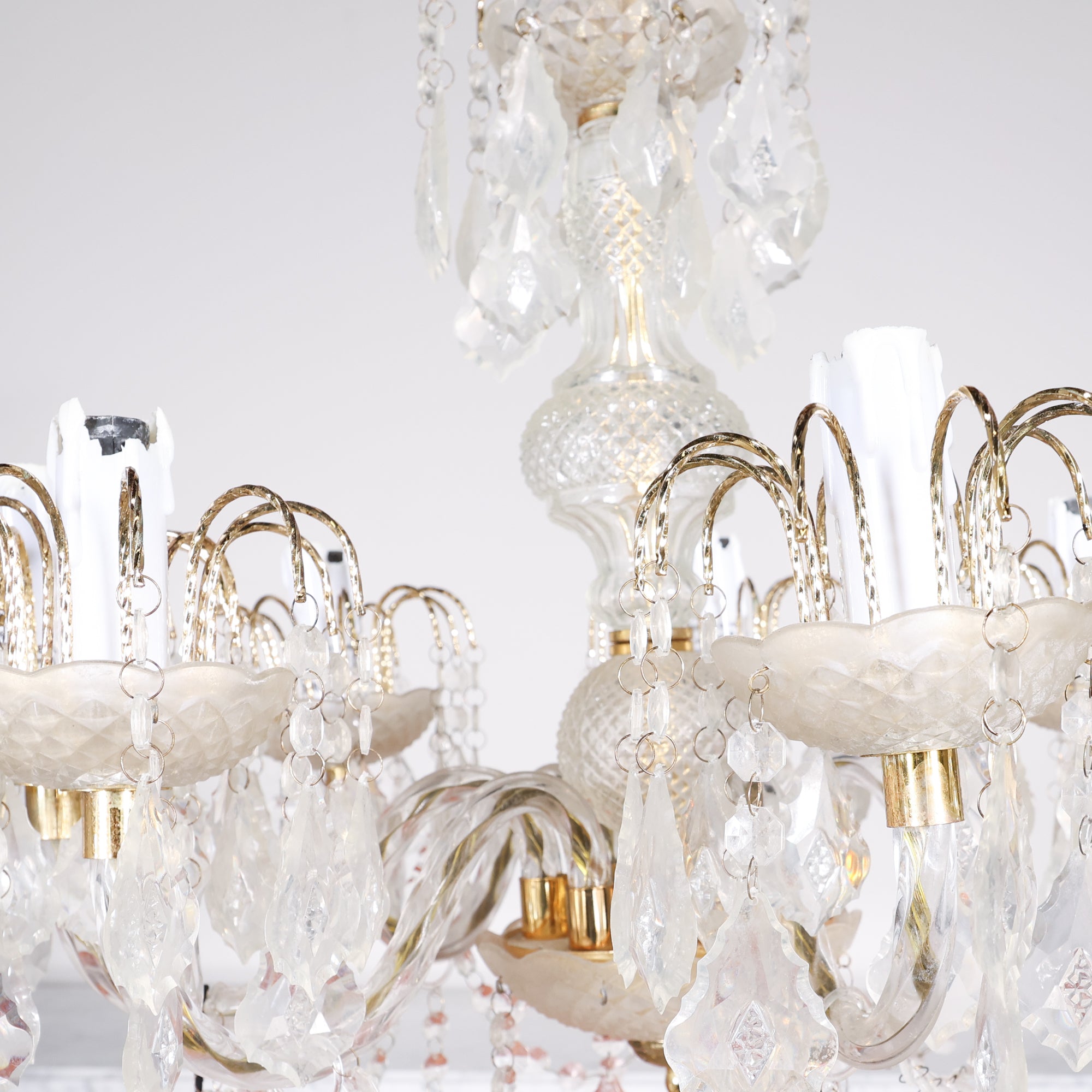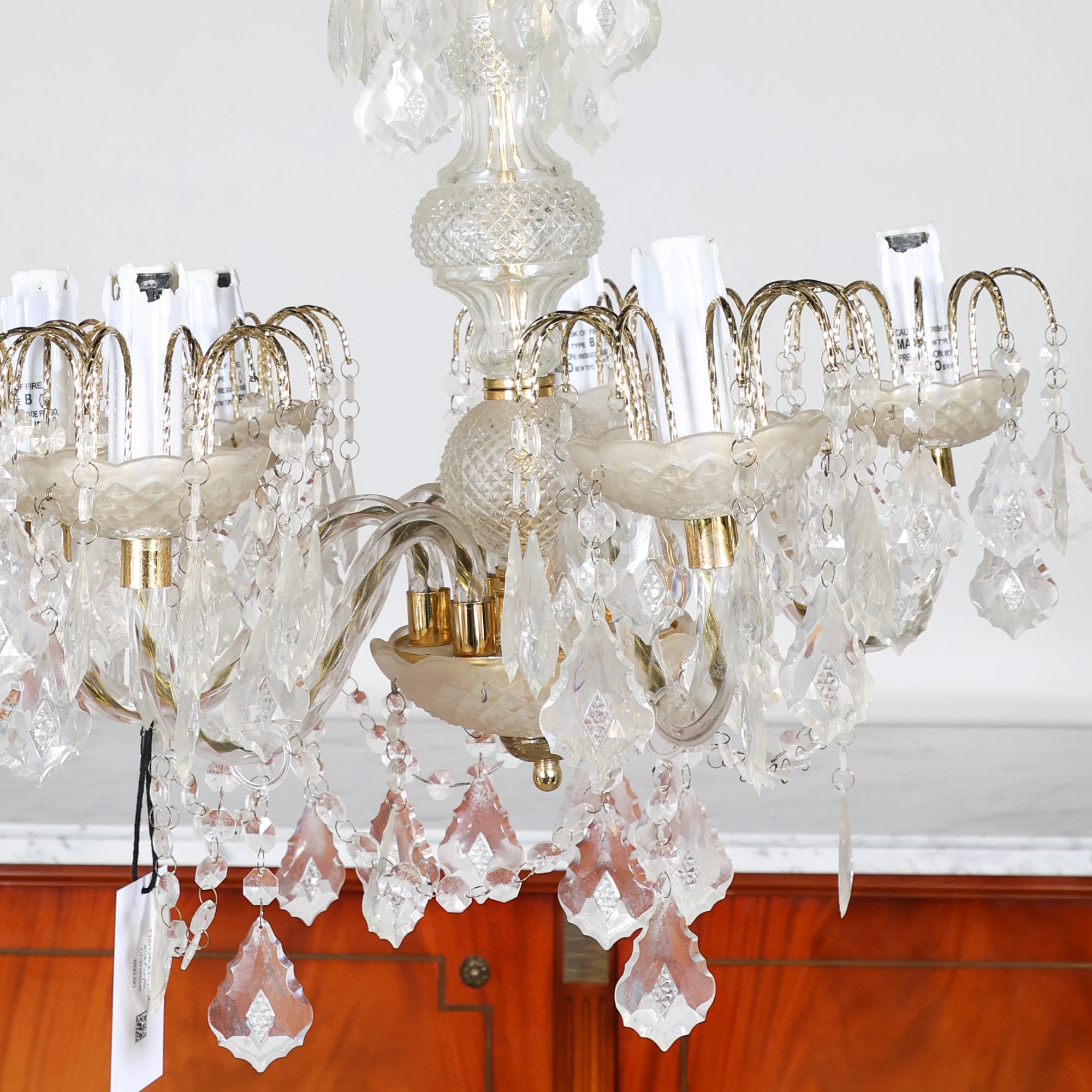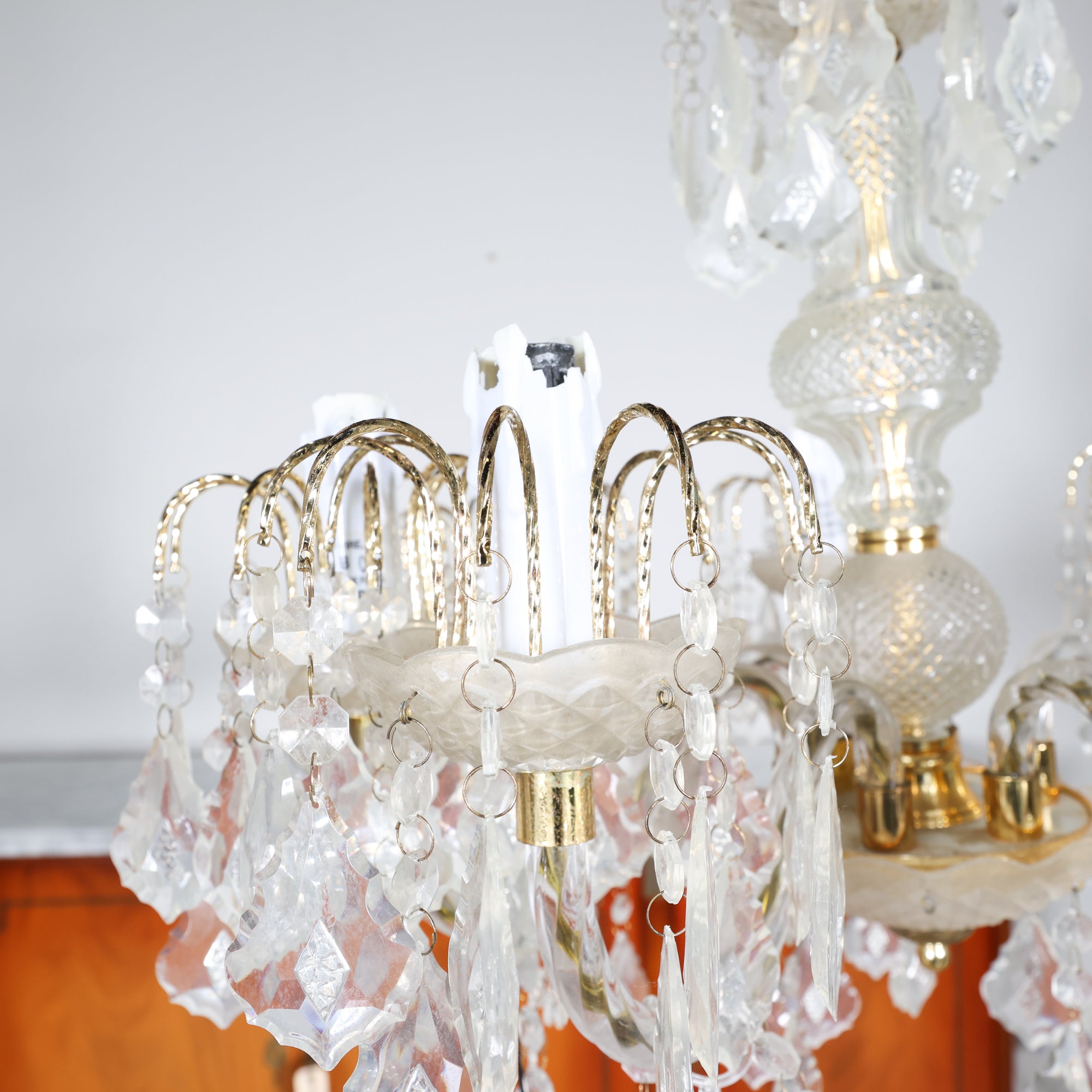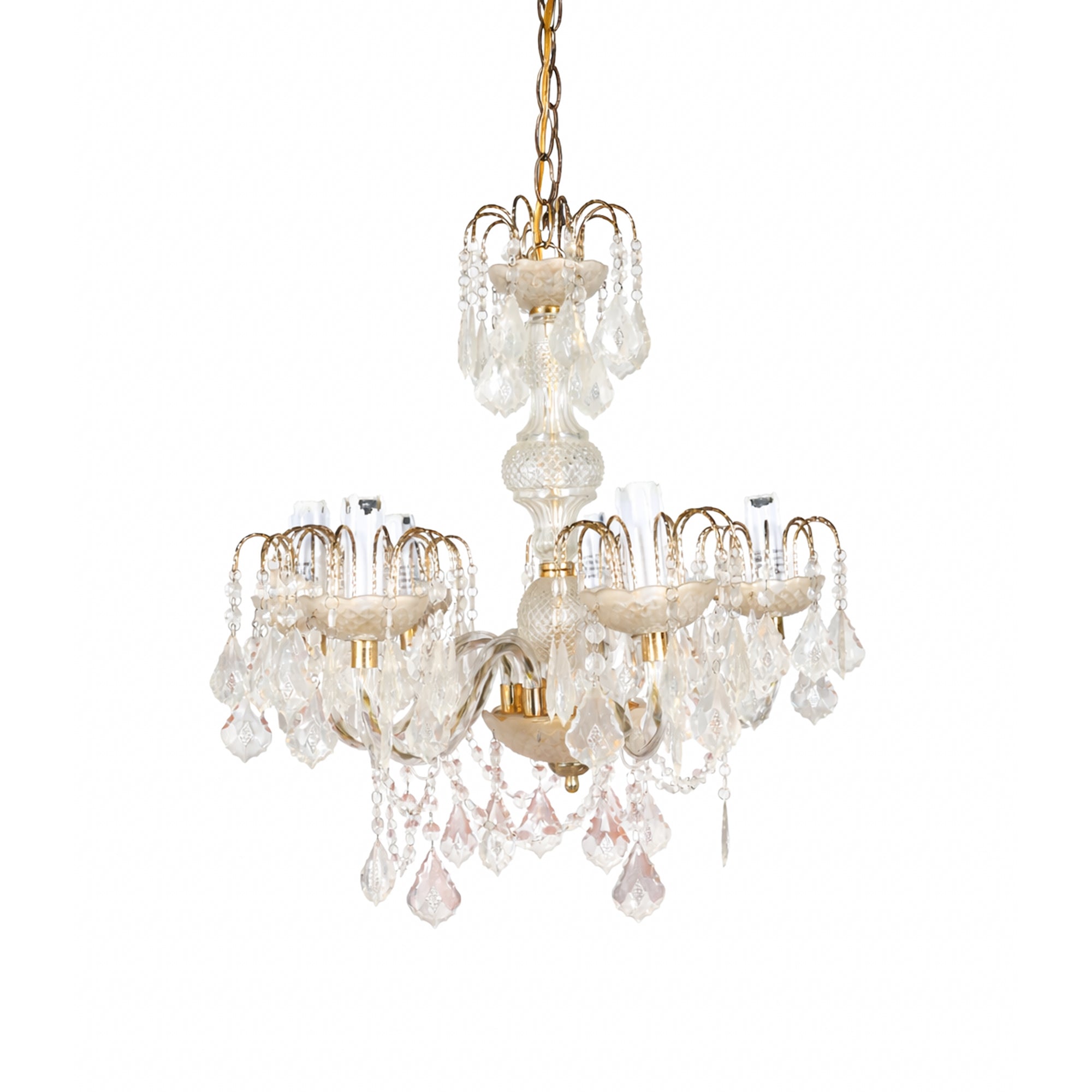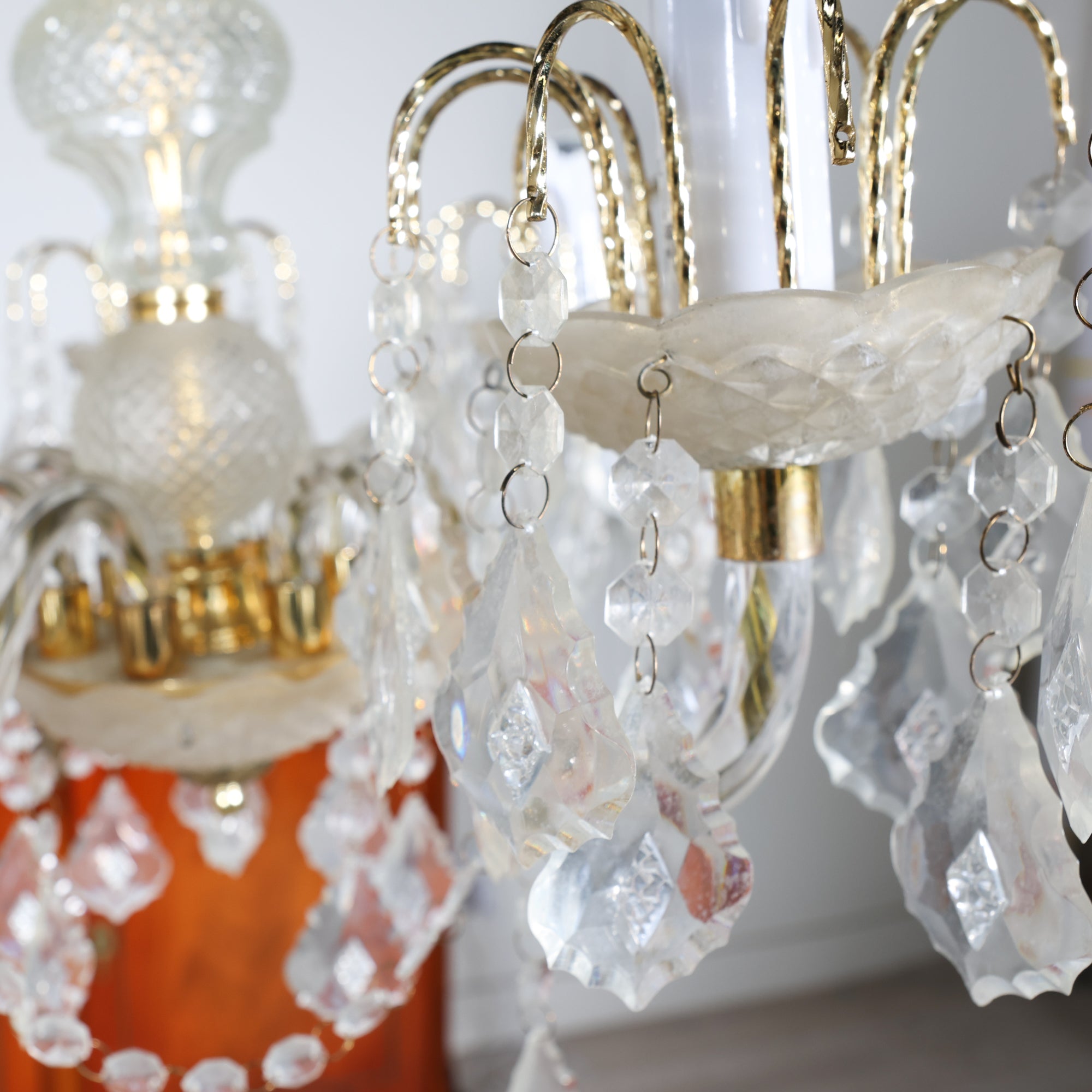 This antique crystal chandelier brings instant romance and drama, with cascading faceted drops, elegant glass arms, and warm brass details throughout. The tiered silhouette creates beautiful movement and glow, catching the light from every angle and throwing it back in the most flattering way.