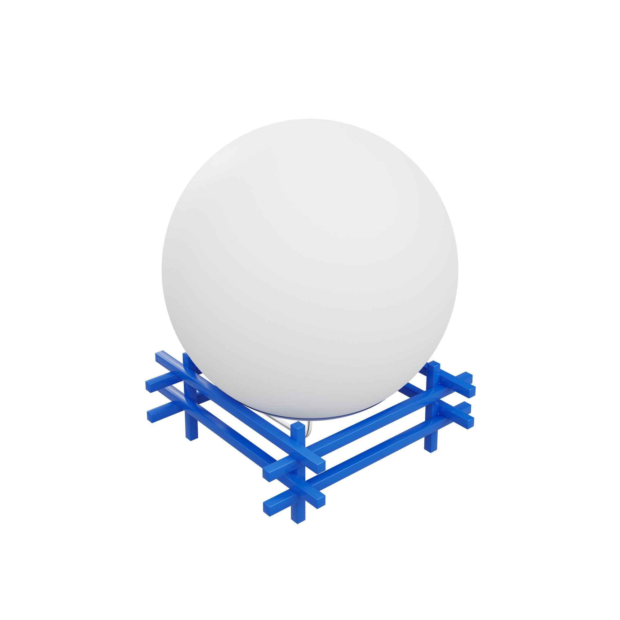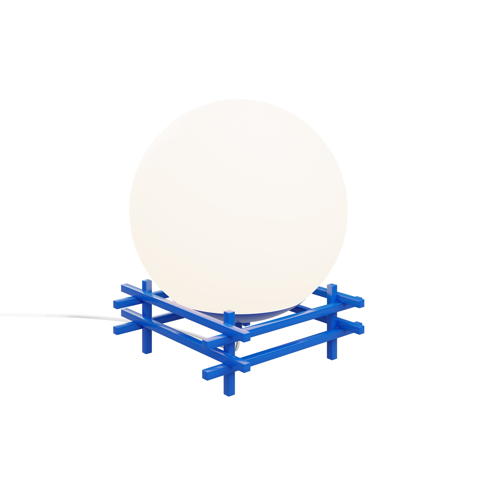 The Go-Go Table Lamp features a globe that illuminates to bathe its surroundings in light. A stacked cobalt blue square base encapsulates the lamp's sphere portion while providing a punch of cobalt contrast.
