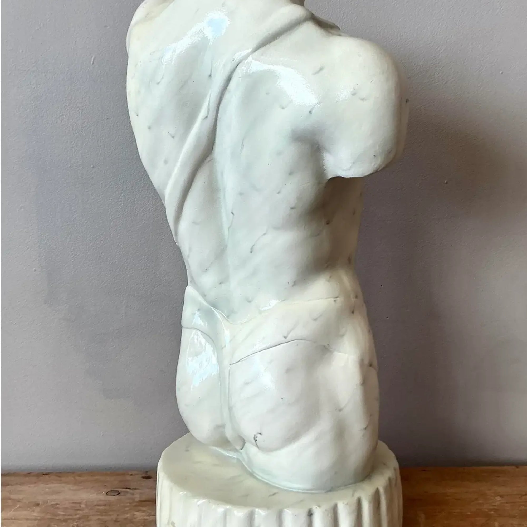 Embrace the raw beauty of this sculpture of a male torso—an exquisite fusion of American craftsmanship and Bohemian sensibility.