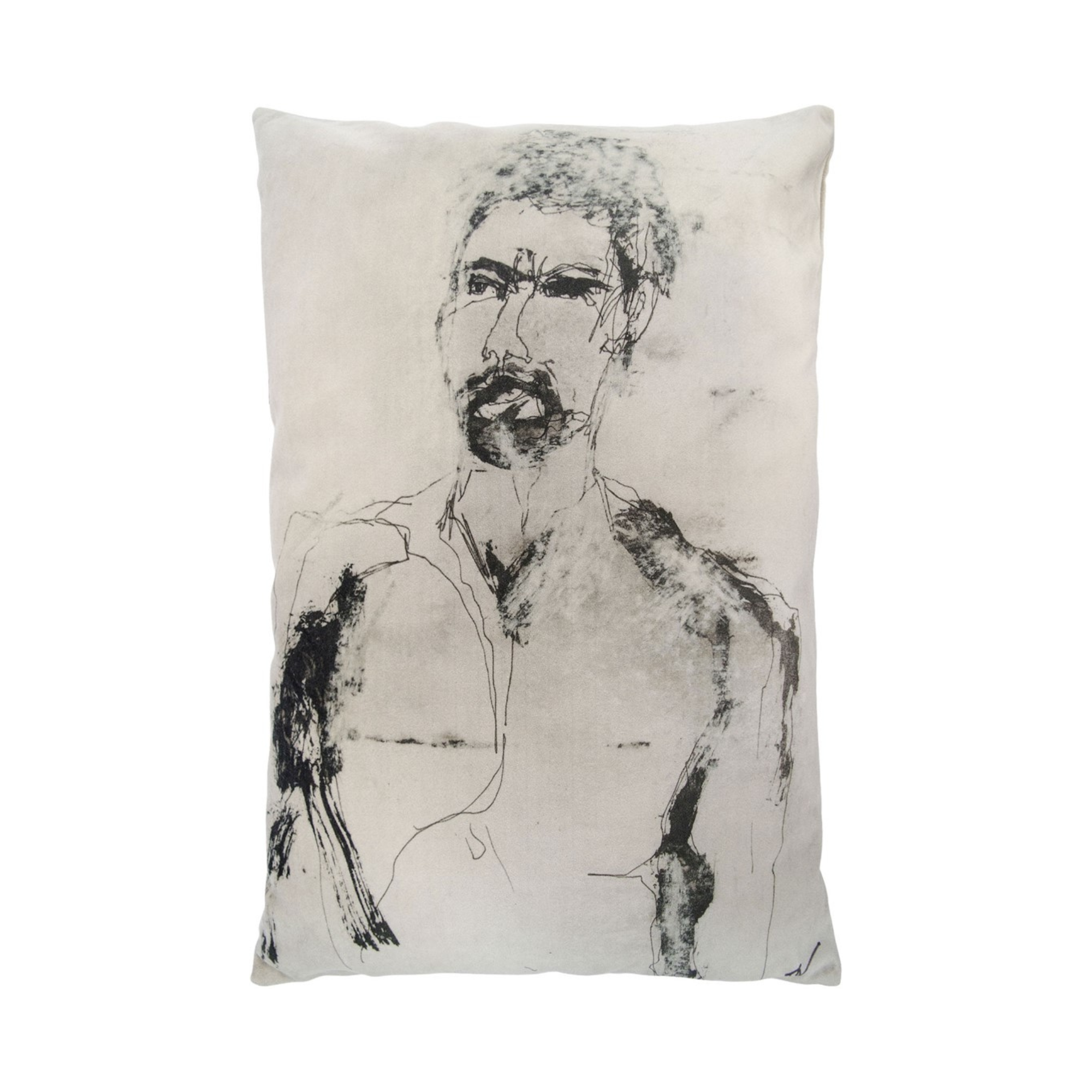 This velvet cushion features a striking line-drawn male portrait—equal parts sketch and statement. The moody, abstract style adds a gallery-like edge to any space, while the plush fabric keeps it cozy. A piece for those who like their art with a side of comfort.
